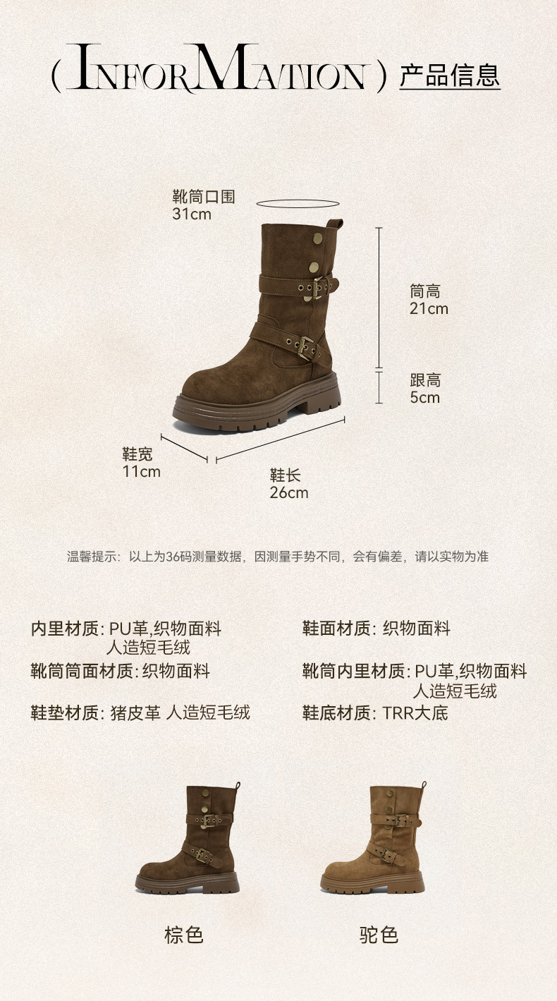 风格:休闲 色系:棕色 跟高数值:5CM 性别:女子 筒高数值:21CM