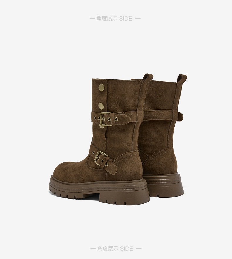 百思图2025冬季新款西部靴时尚复古厚底圆头女中靴BP335DZ5