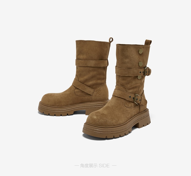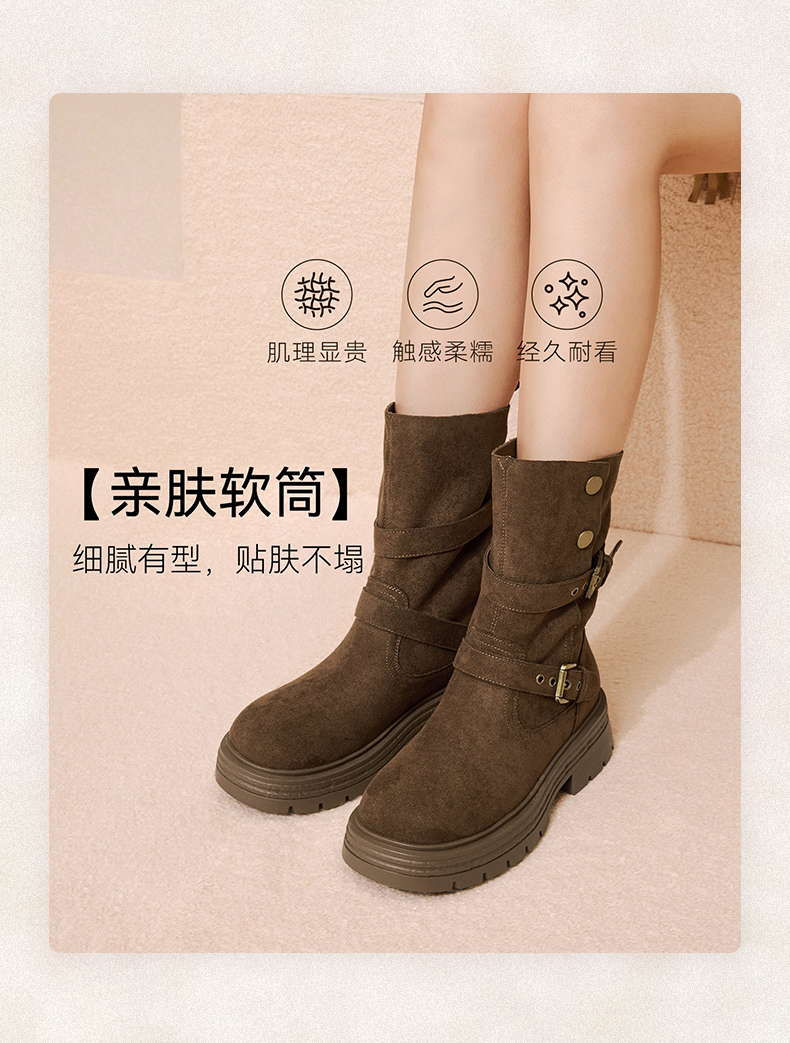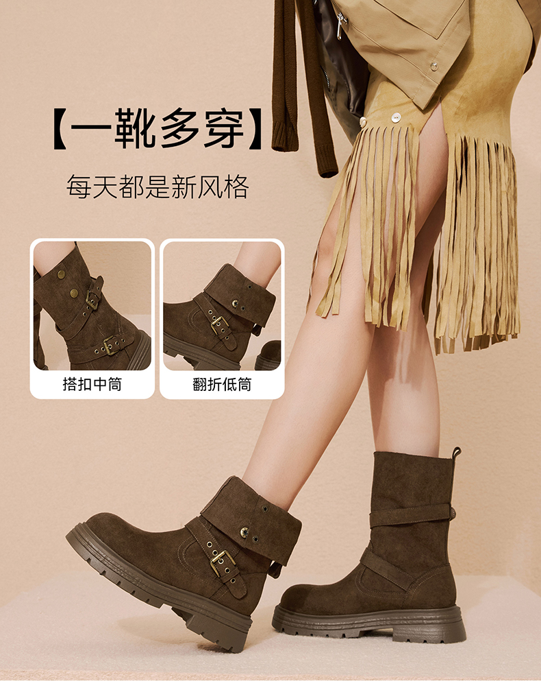 • 百思图2025冬季新款西部靴时尚复古厚底圆头女中靴BP335DZ5