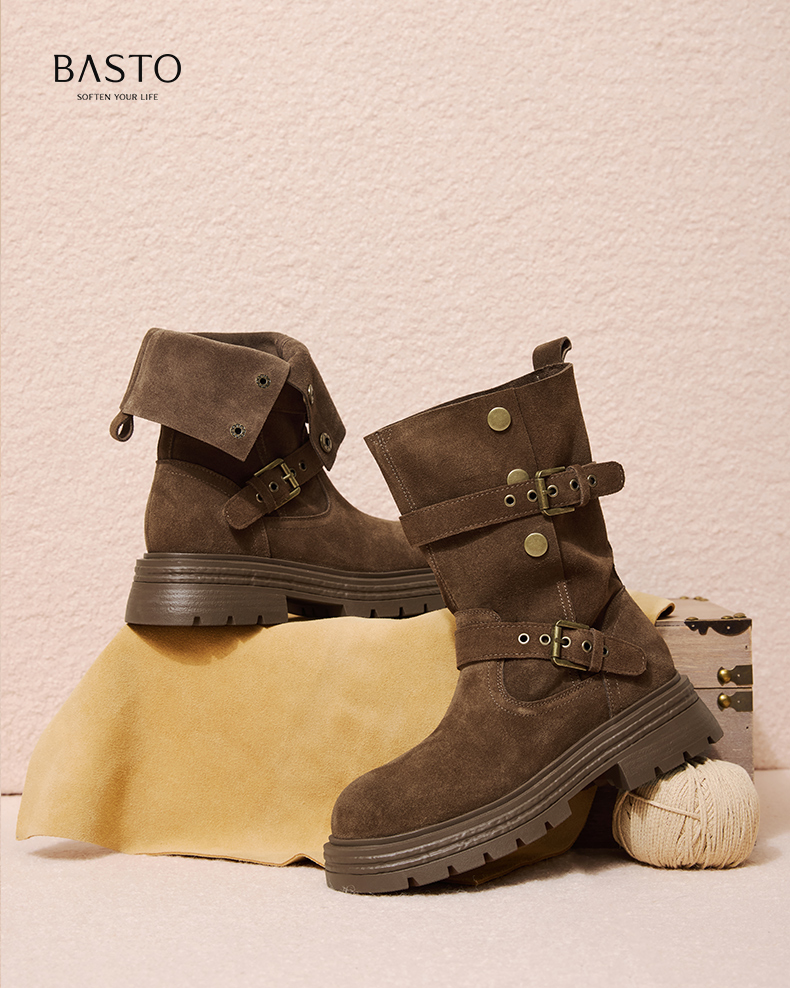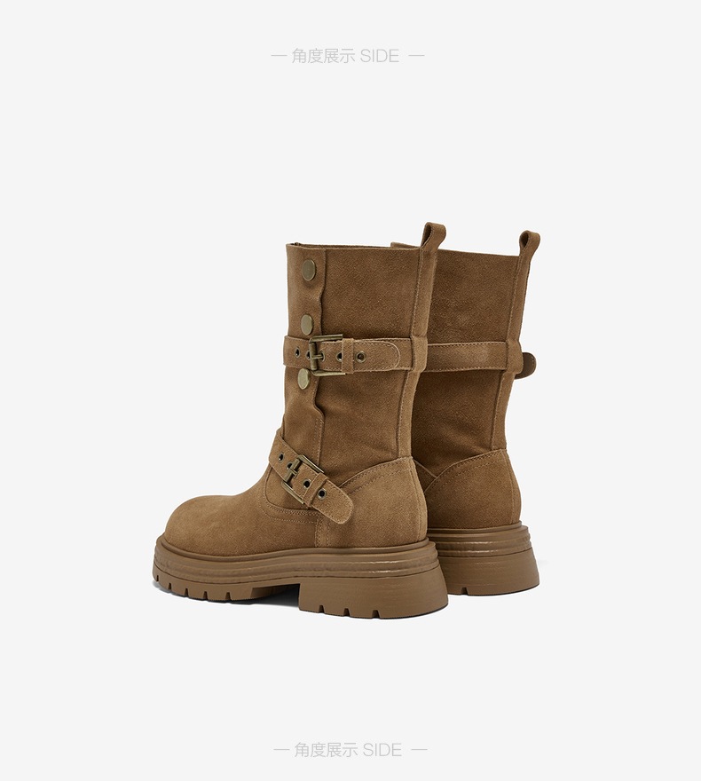 百思图2025冬季新款商场同款西部靴时尚复古厚底女中靴BP338DZ5