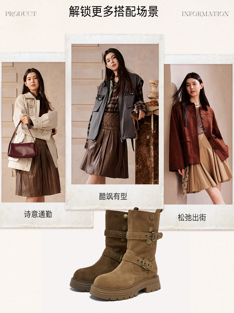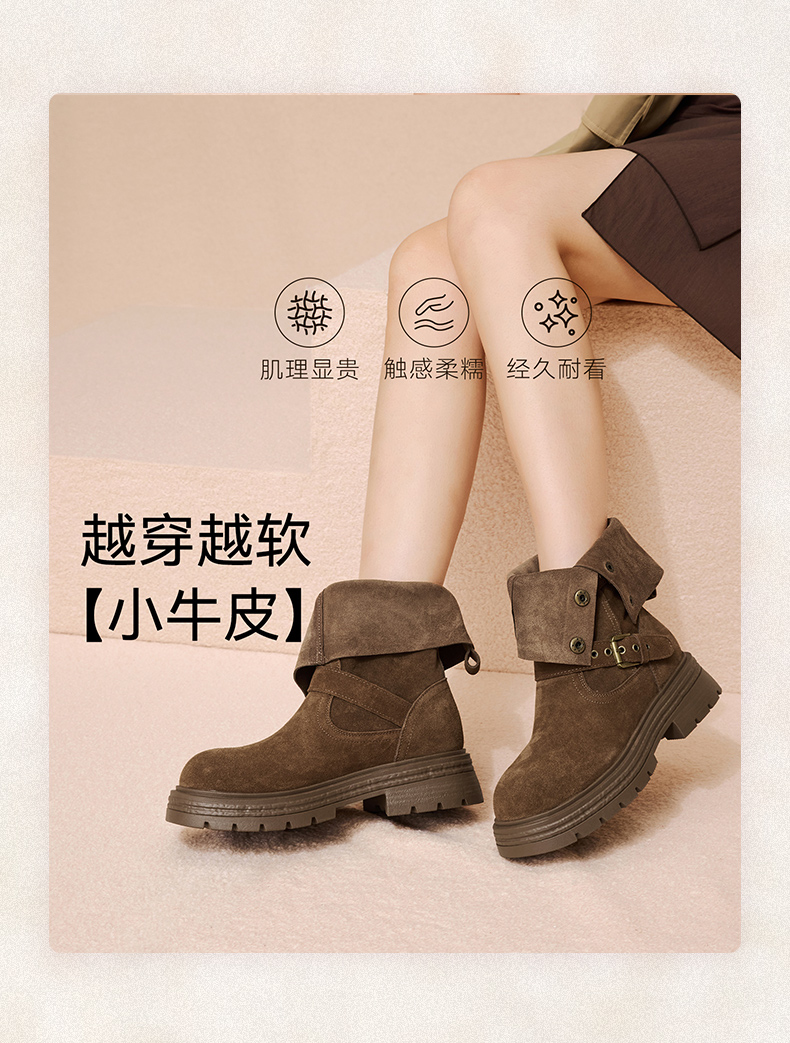 • 百思图2025冬季新款商场同款西部靴时尚复古厚底女中靴BP338DZ5
