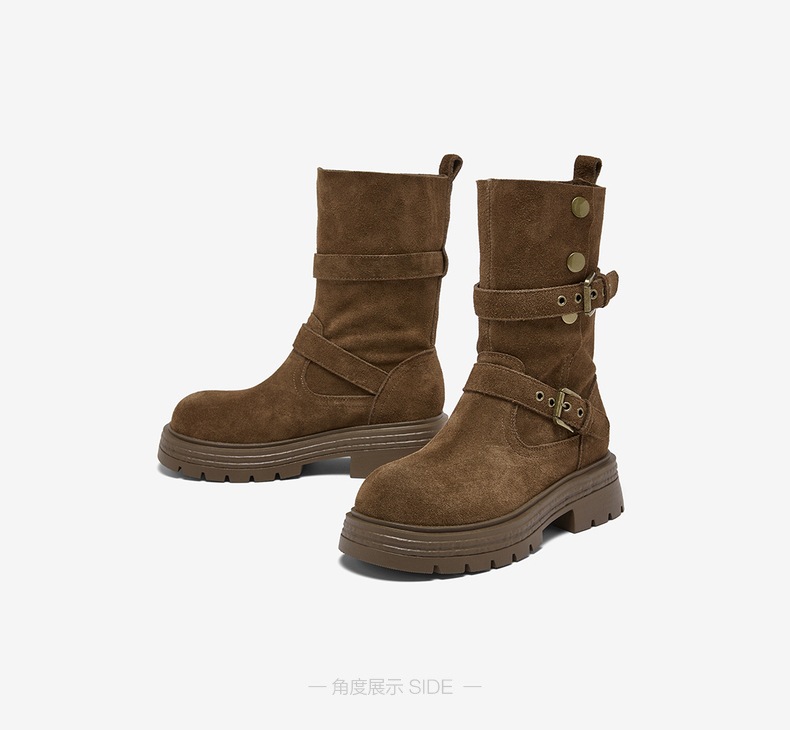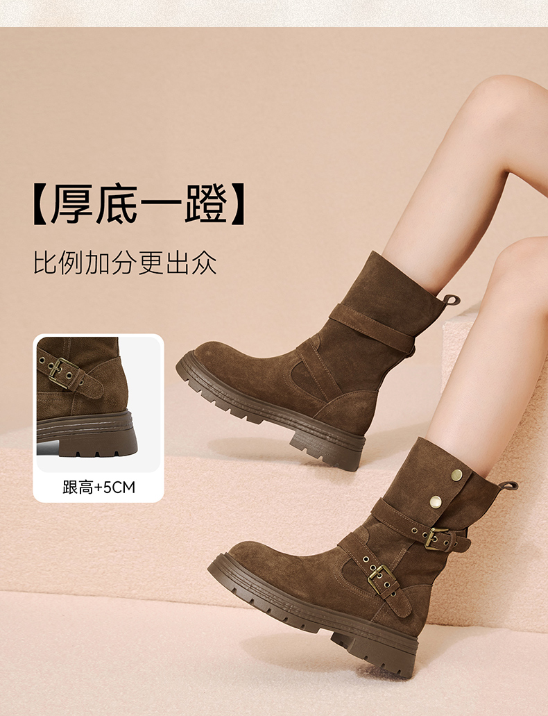 | 风格:时尚潮流 | 色系:棕色 | 跟高数值:5CM | 性别:女子 | 筒高数值:21CM |