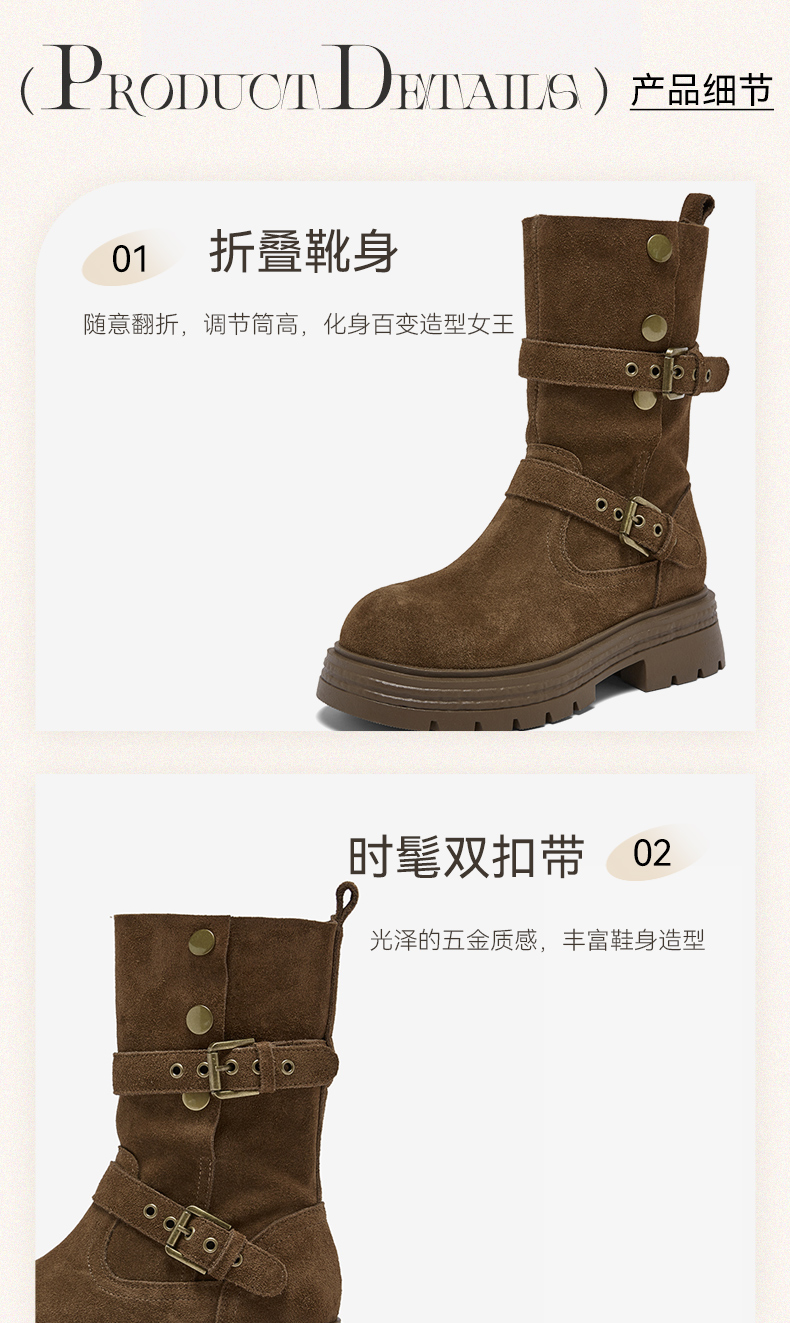 • 百思图2025冬季新款商场同款西部靴时尚复古厚底女中靴BP338DZ5
