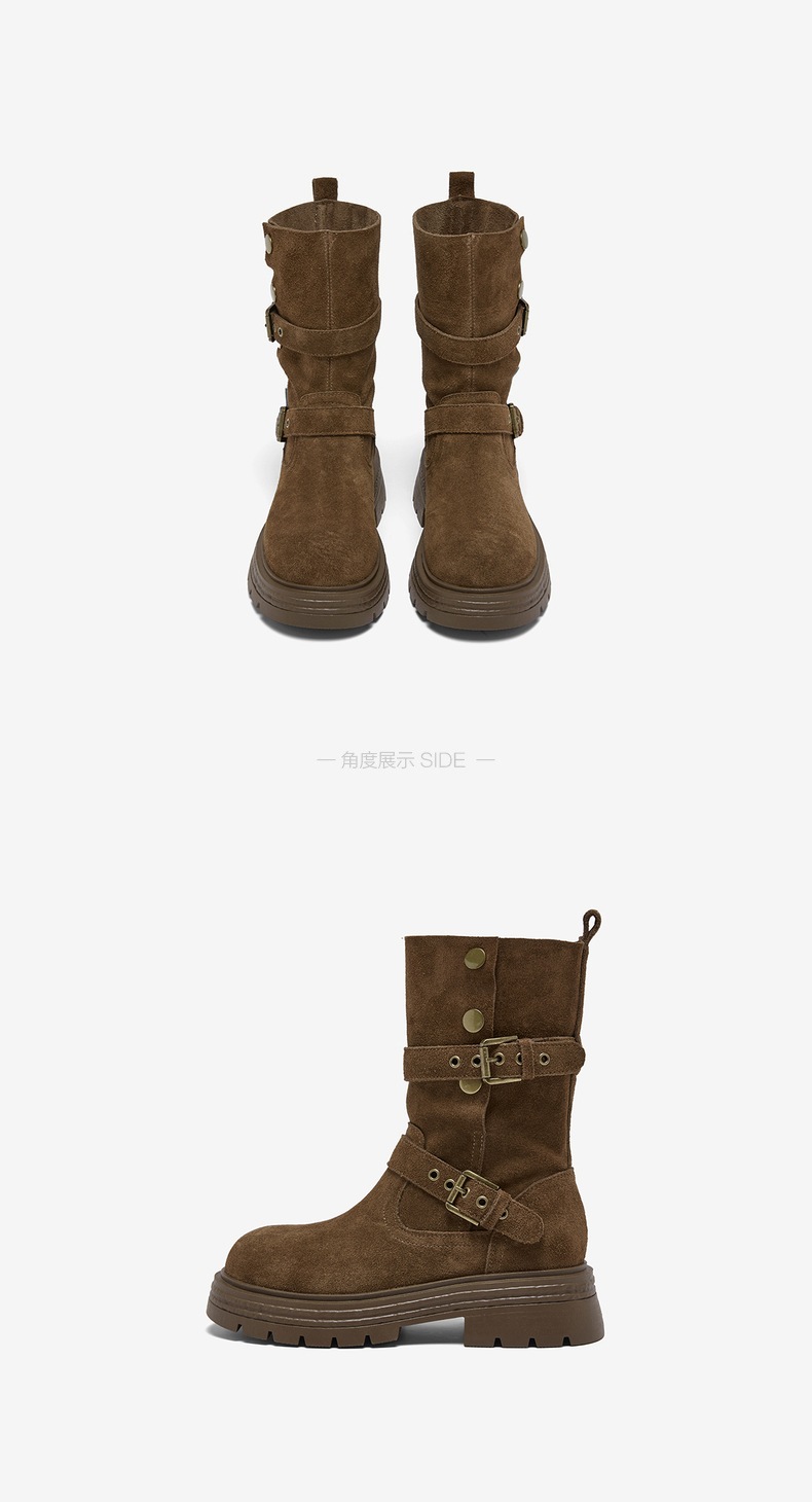 百思图2025冬季新款商场同款西部靴时尚复古厚底女中靴BP338DZ5