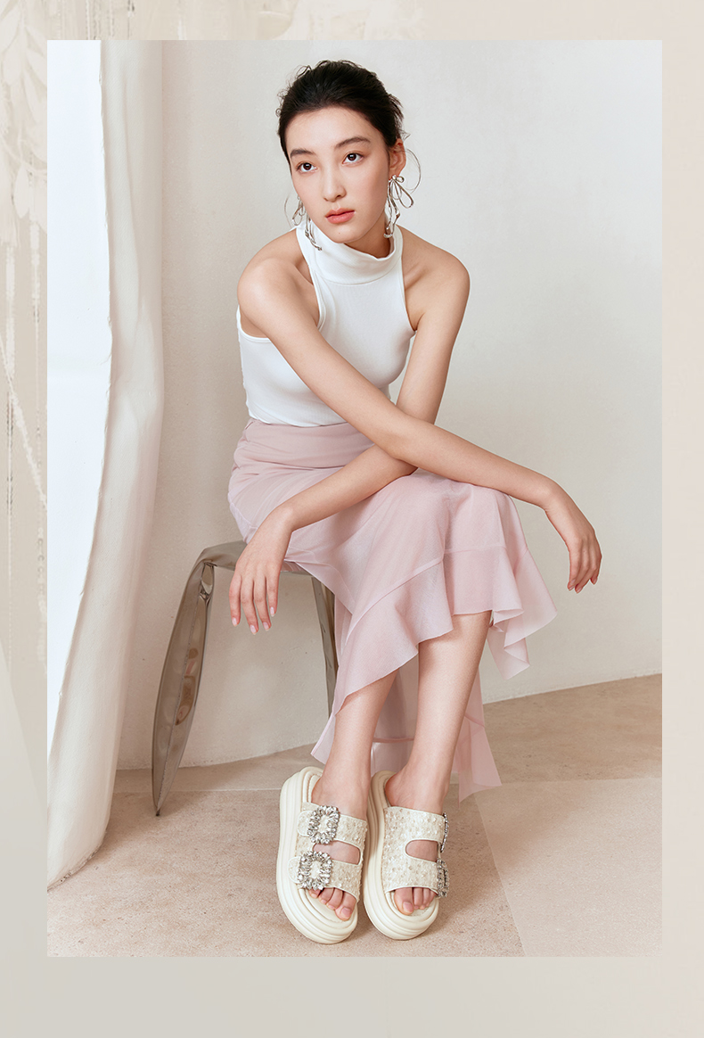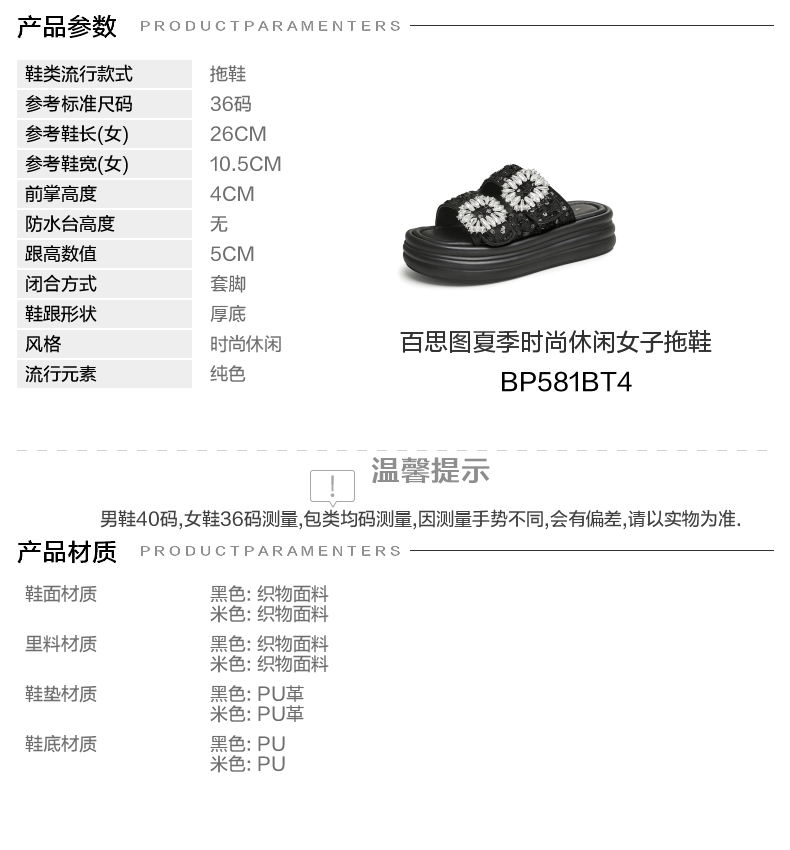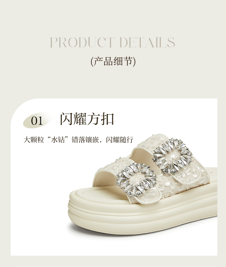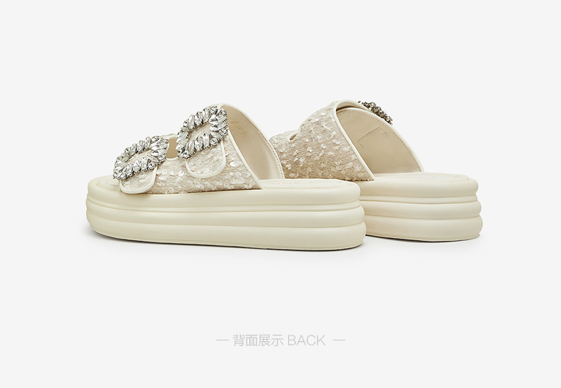 | 鞋类流行款式:拖鞋 | 鞋头款式:露趾 | 执行标准:拖鞋 QB/T 4552-2020 | 跟高范围:中跟鞋(3-5CM) | 鞋面图案:纯色 |