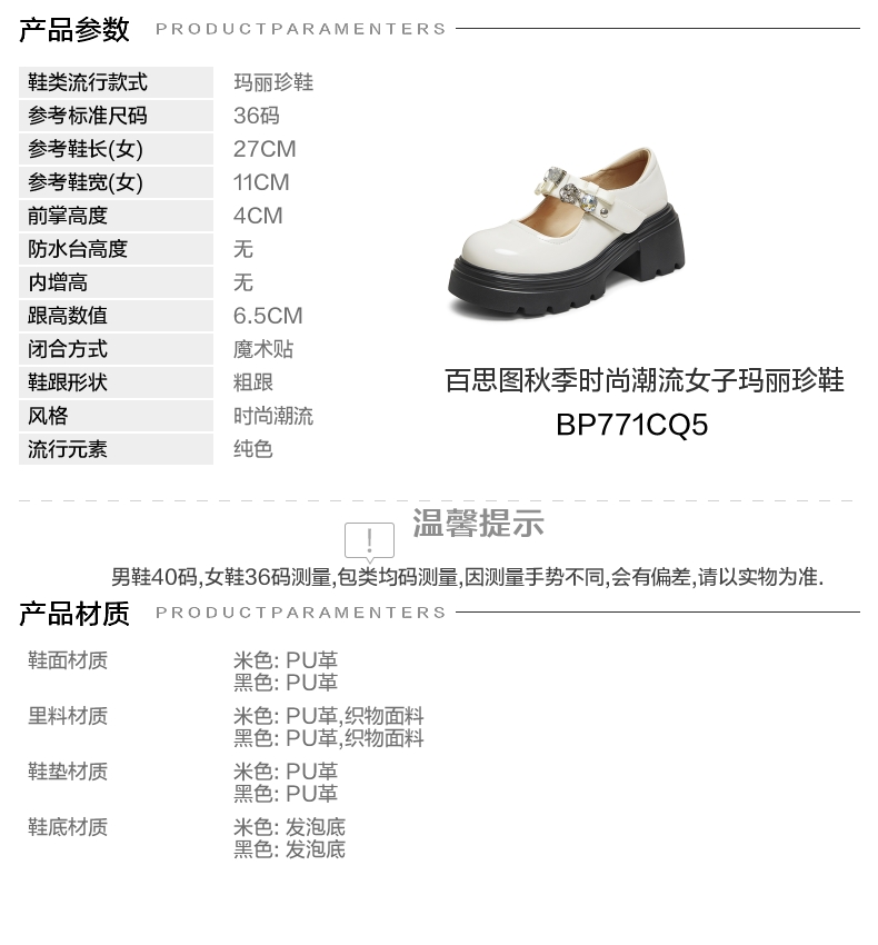 | 皮质特征:无 | 前掌高度:4CM | 防水台高度:无 | 鞋类流行款式:玛丽珍鞋 |