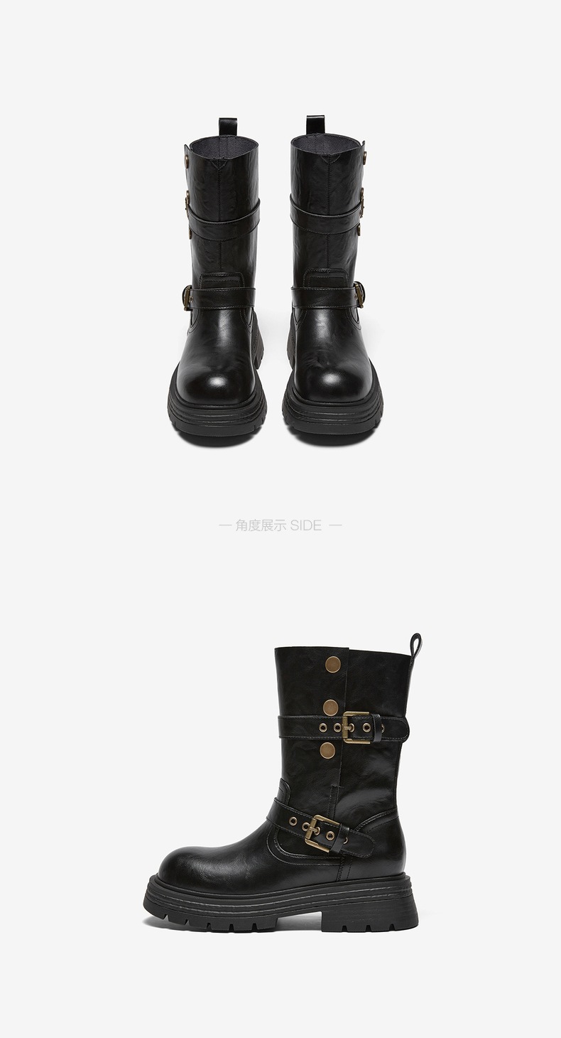 | 鞋底材质:TPR大底 | 靴筒内里材质:织物面料 | 内增高:无 | 鞋面材质:PU革 | 闭合方式:搭扣 |