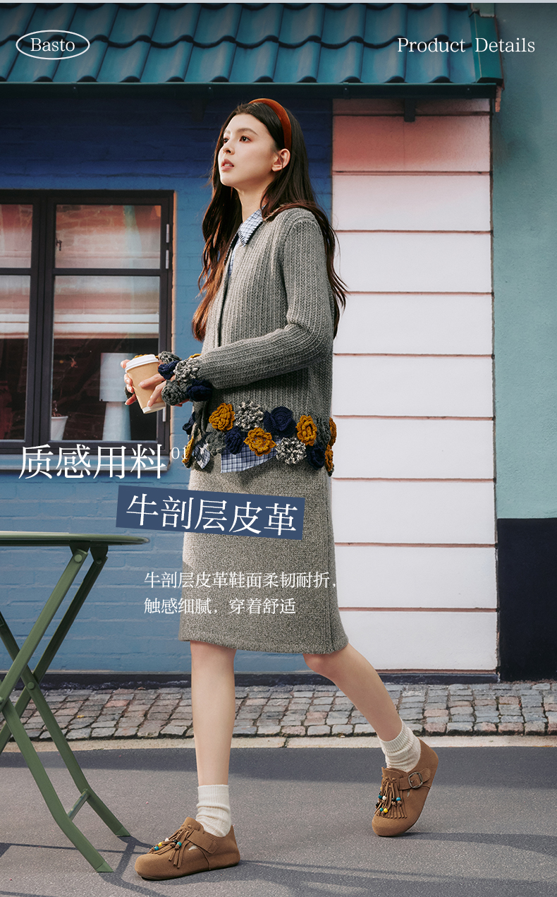 BASTO(百思图),品牌拥有17年历史,秉承优雅、甜美、清新的设计理念,主张“好嫁风”的产品风格,将甜美俏丽的少女情怀融合优雅气质的时尚品味,塑造出唯美优雅、受欢迎的女鞋款式。主打以女性温柔与亲和力为特色的流行时尚产品,糅合雅致又富有亲和力的裸粉色调,淑媛端庄、清新甜美。目前品牌已开设线下门店达1400多家。