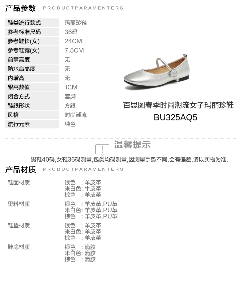 | 所在区域:电子商务 | 配跟:无 | 开口深度:浅口 | 风格分类:玛丽珍鞋 | 上市时间:2025年春季 |