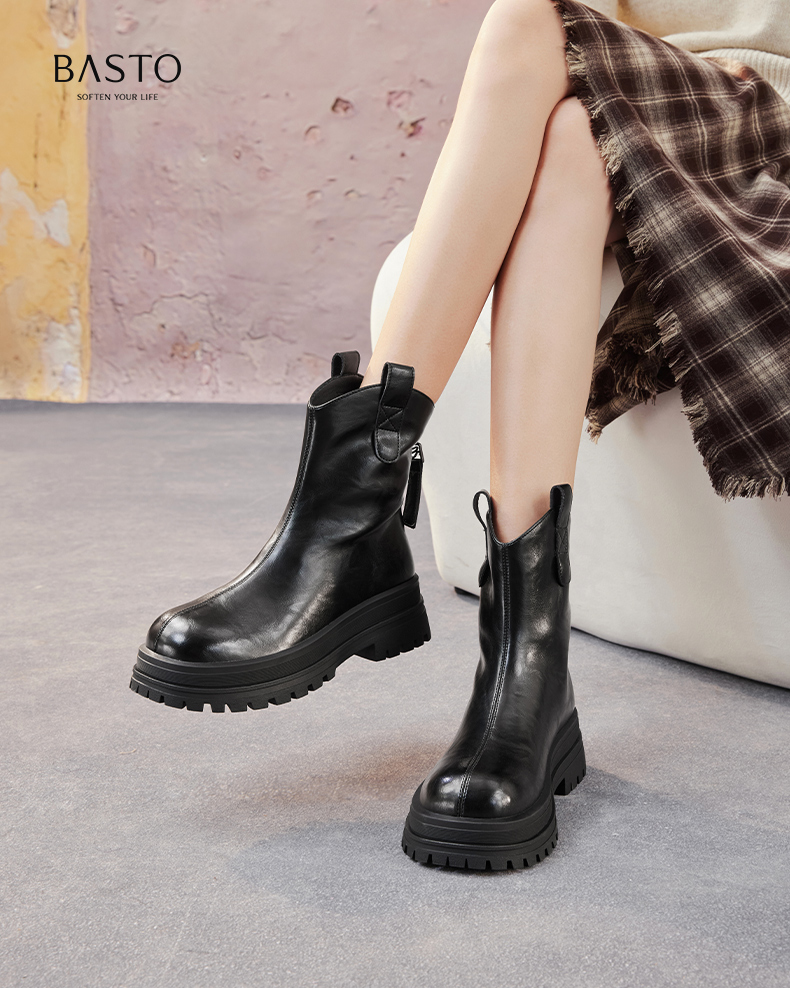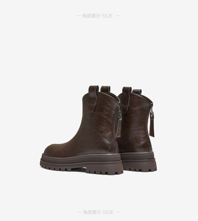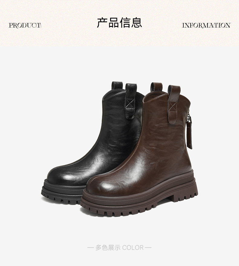 | 鞋底材质:橡胶底 | 靴筒内里材质:人造短毛绒 | 内增高:无 | 鞋面材质:PU革 | 闭合方式:后拉链 |