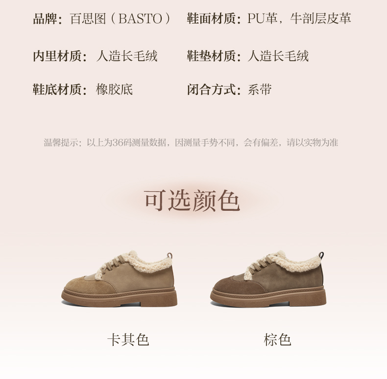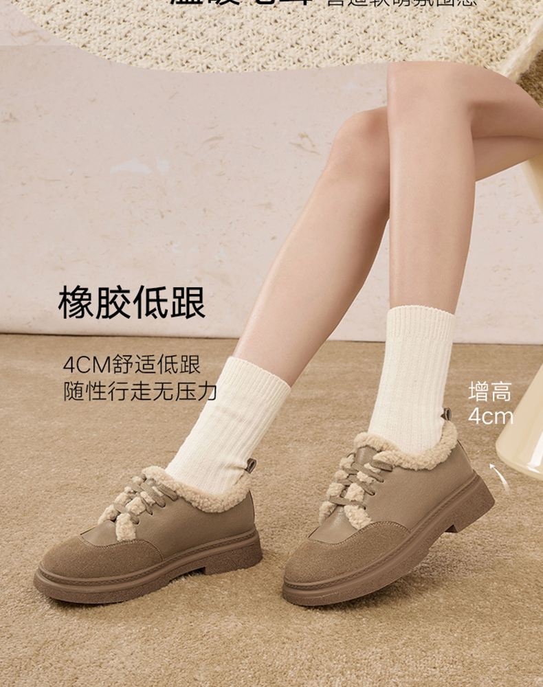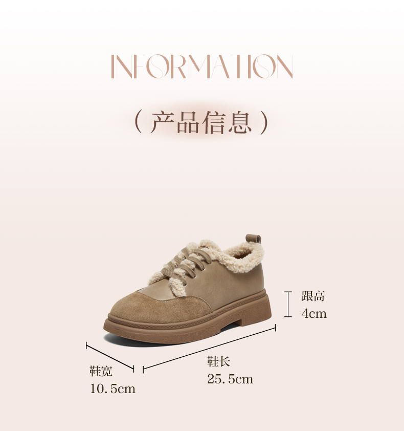 | 色系:卡其 | 参考标准尺码:36码 | 跟高数值:4CM | 性别:女子 | 里料材质:人造长毛绒 |