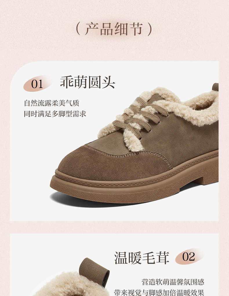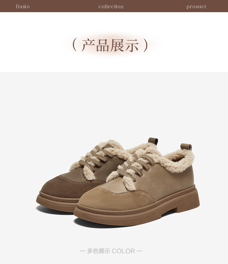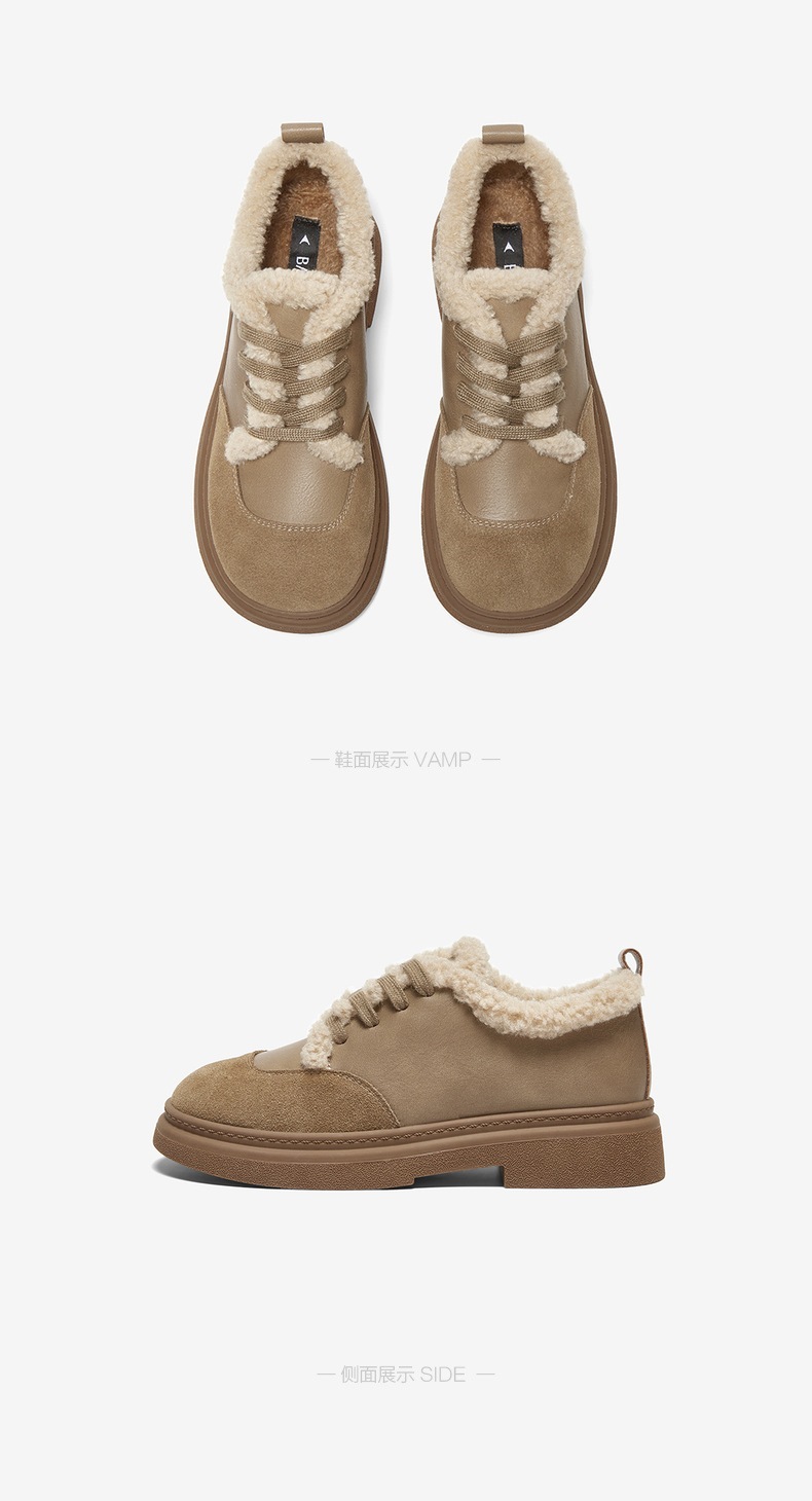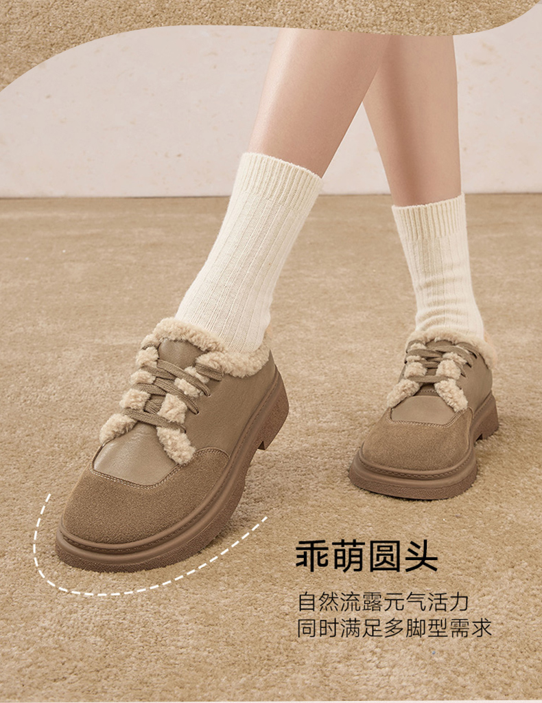 | 制鞋工艺:胶贴皮鞋 | 款式季节:春季 | 鞋垫材质:人造长毛绒 | 渠道划分:线下同步 | 前掌高度:2.5CM |