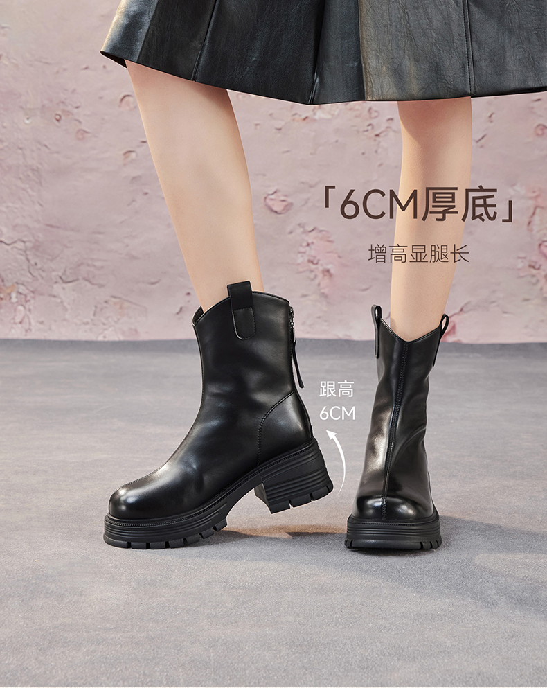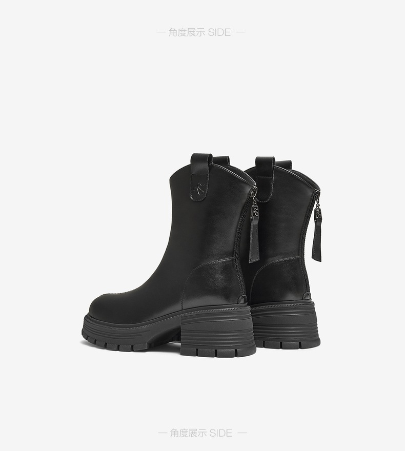 | 鞋底材质:橡胶底 | 靴筒内里材质:PU革织物面料 | 内增高:无 | 鞋面材质:PU革 | 闭合方式:后拉链 |