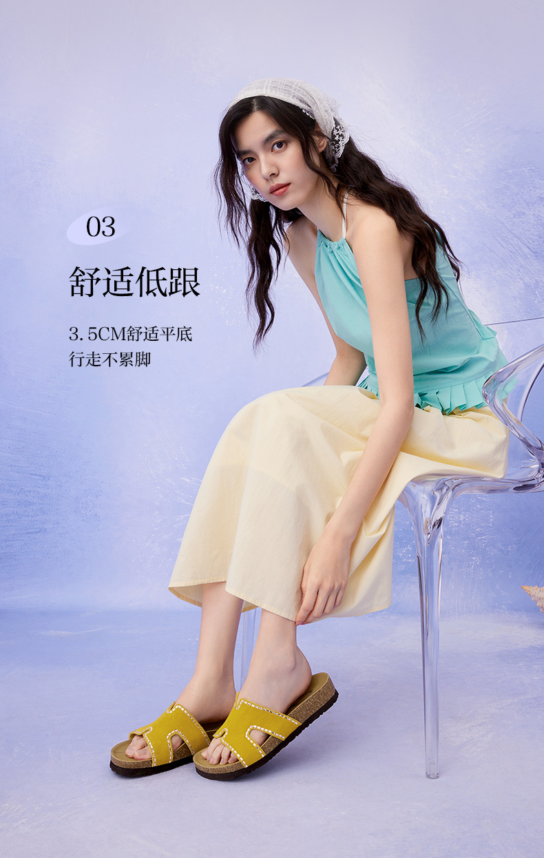 | 上市时间:2025年夏季 | 制鞋工艺:胶贴皮鞋 | 款式季节:夏季 | 鞋垫材质:织物/猪皮 | 前掌高度:1CM |