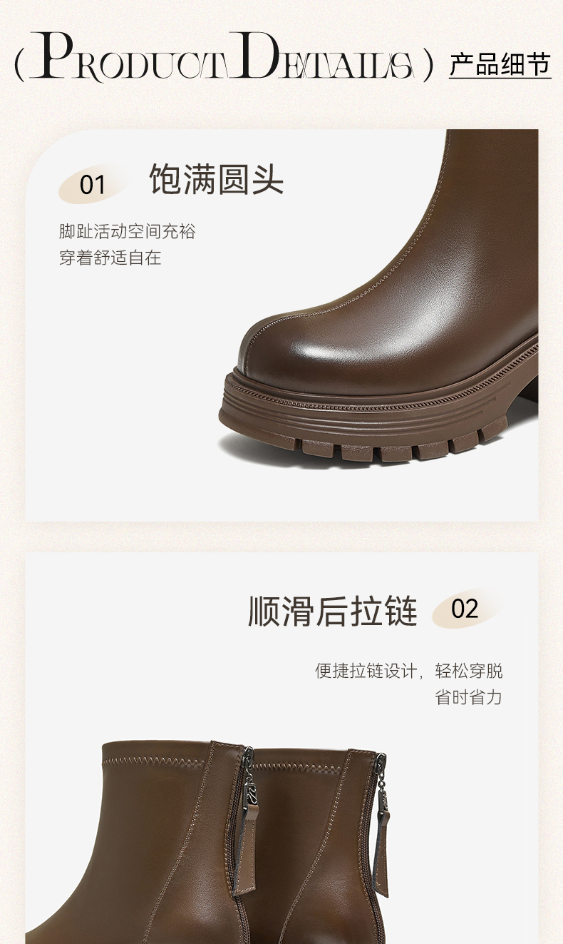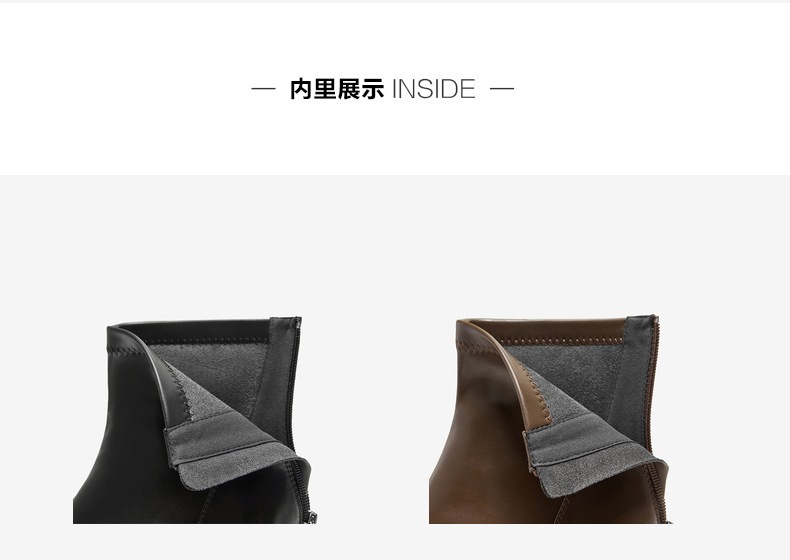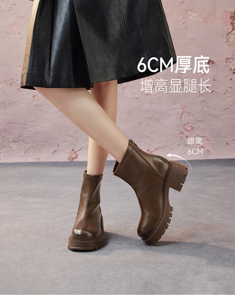 | 鞋底材质:橡胶底 | 靴筒内里材质:PU革织物面料 | 内增高:无 | 鞋面材质:PU革 | 闭合方式:后拉链 |