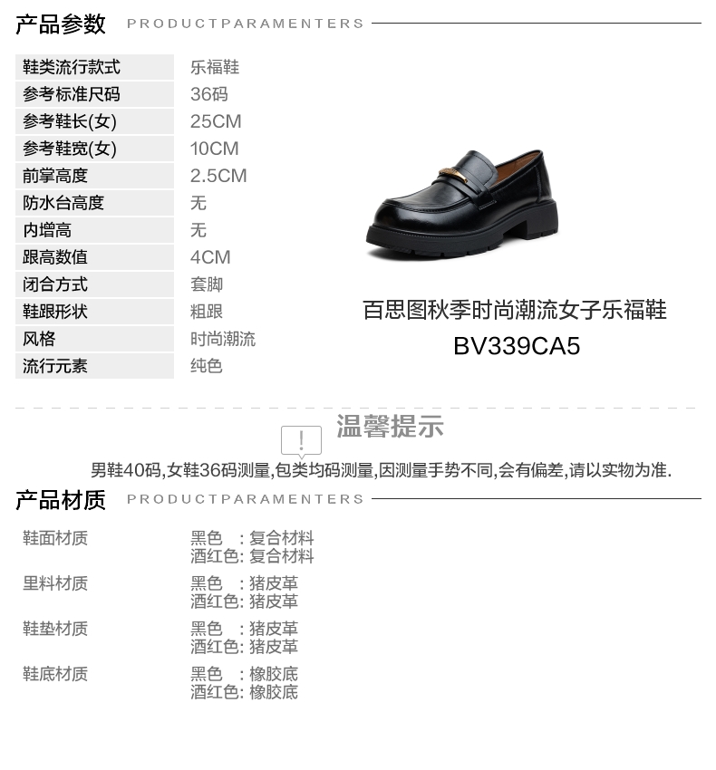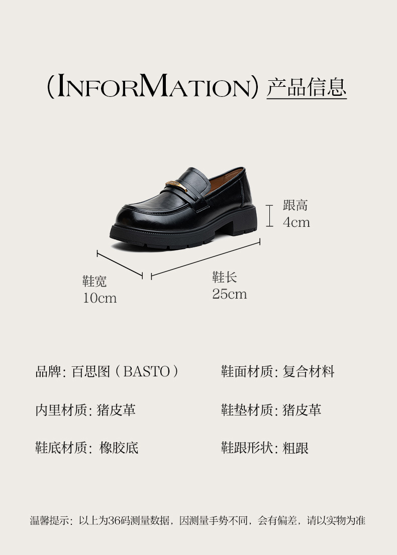 | 配跟:无 | 上市时间:2025年秋季 | 鞋类流行款式:乐福鞋 | 鞋头款式:圆头 | 鞋面图案:纯色 |