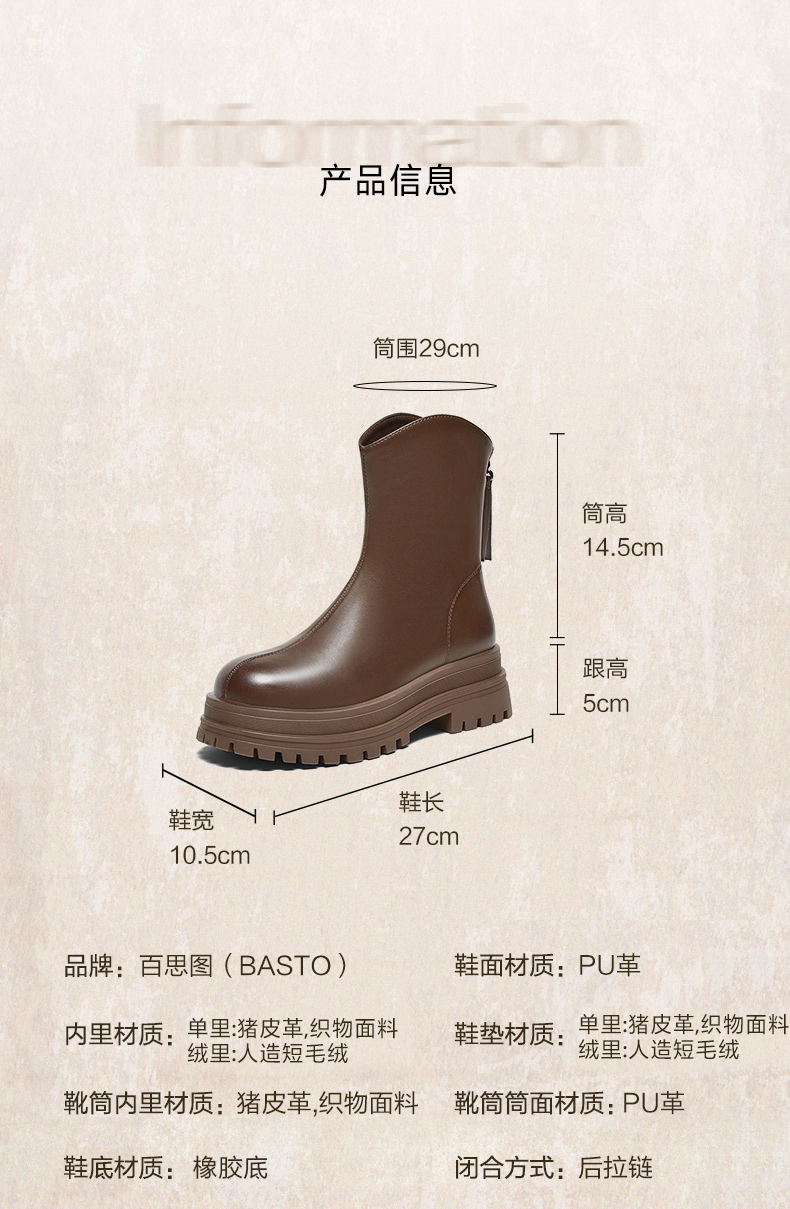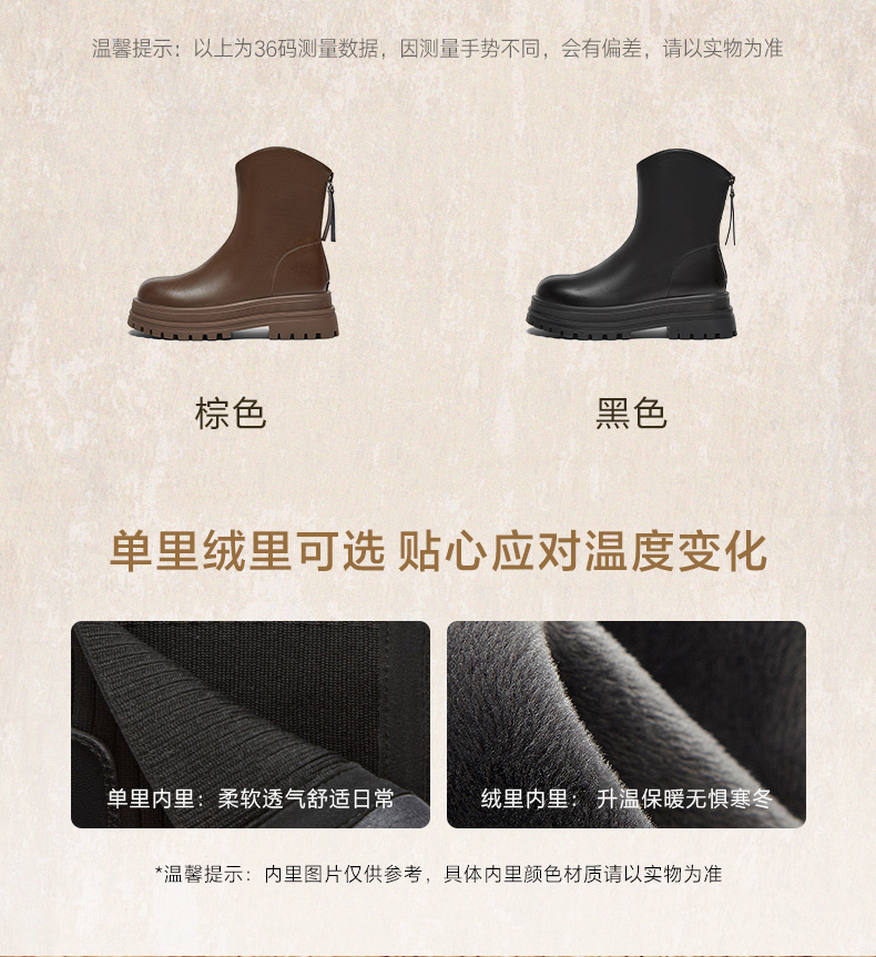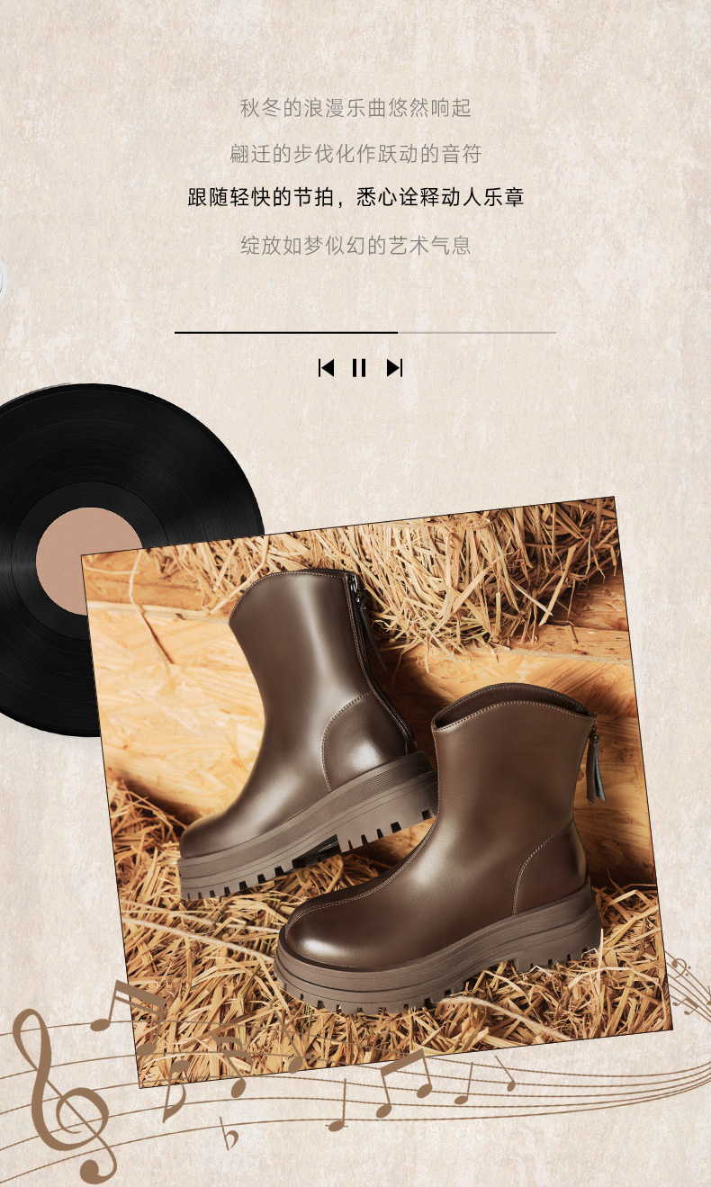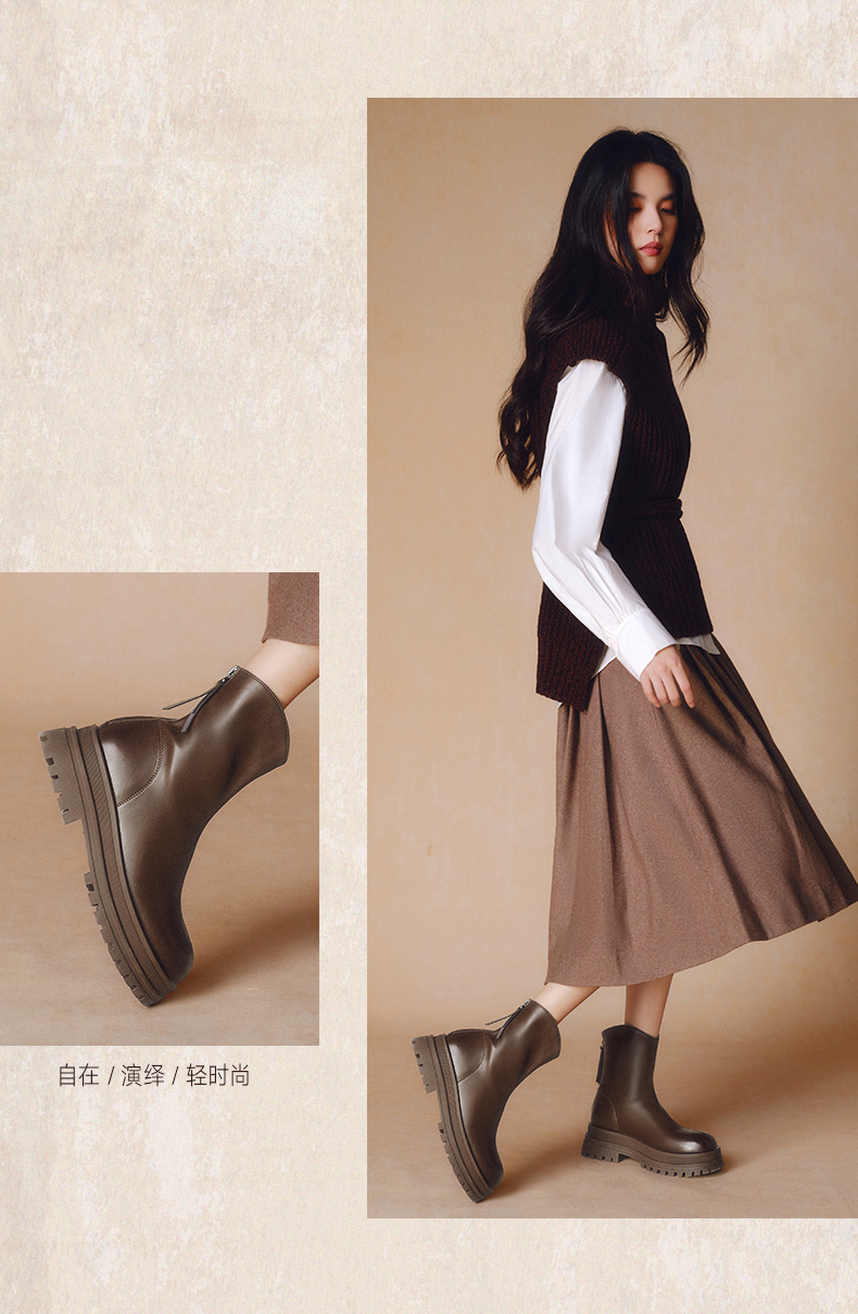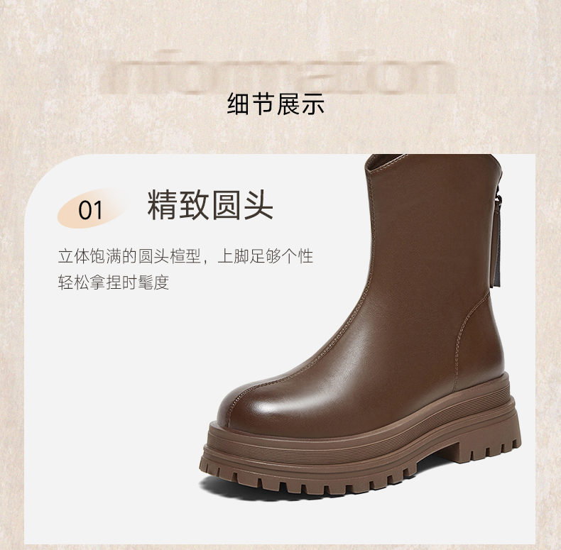 | 鞋类流行款式:短靴 | 鞋头款式:圆头 | 执行标准:舒适上班鞋Q/LR001-2023 | 跟高范围:中跟鞋(3-5CM) | 鞋面图案:纯色 |