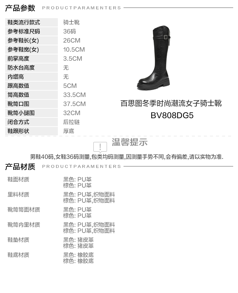 | 配跟:无 | 靴筒口围:37.5CM | 上市时间:2025年冬季 | 鞋类流行款式:骑士靴 | 鞋头款式:圆头 |
