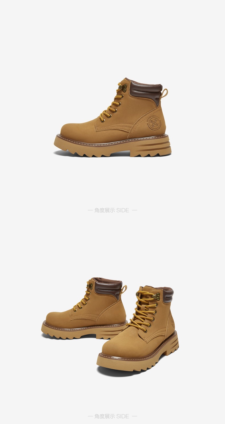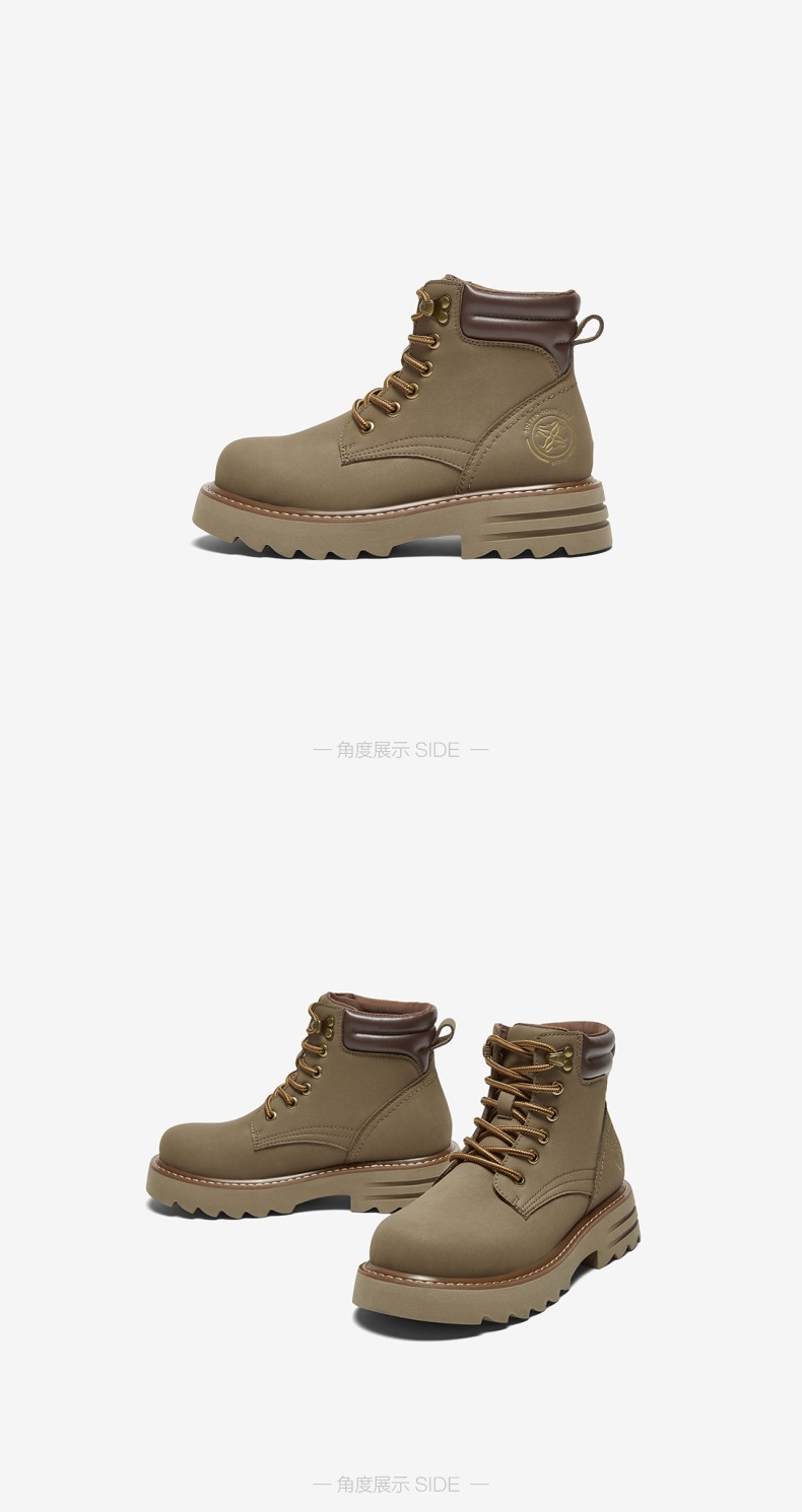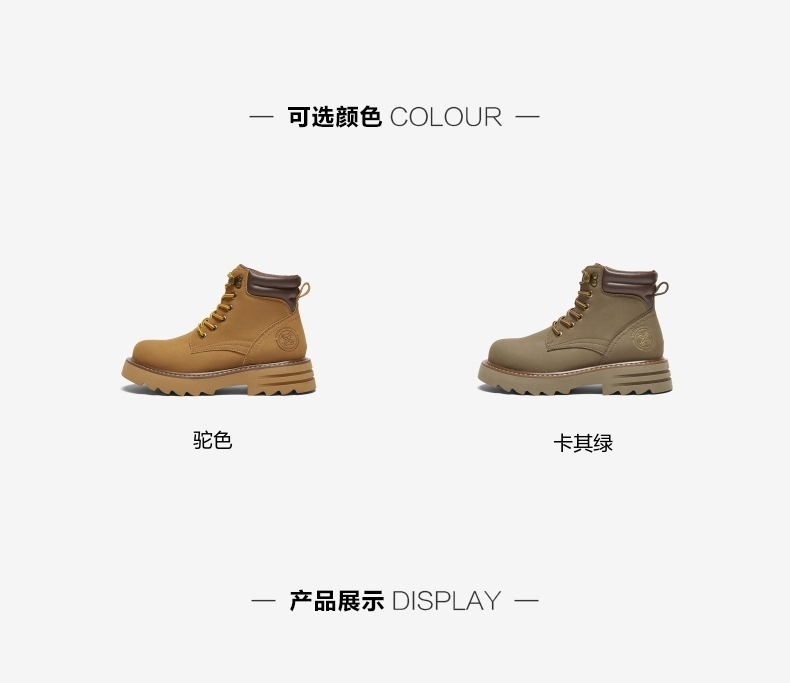 | 鞋类流行款式:工装靴 | 鞋头款式:圆头 | 执行标准:舒适上班鞋Q/LR001-2023 | 跟高范围:中跟鞋(3-5CM) | 鞋面图案:纯色 |