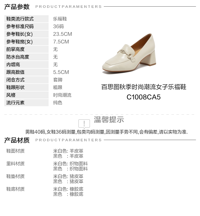 | 配跟:无 | 上市时间:2025年秋季 | 鞋类流行款式:乐福鞋 | 鞋头款式:圆头 | 鞋面图案:纯色 |