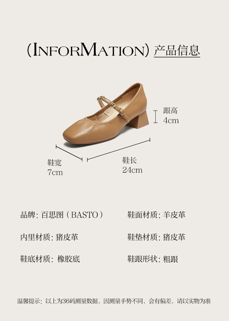 | 鞋面材质:羊皮革 | 流行元素:纯色 | 参考鞋长(女):24CM | 参考鞋宽(女):7CM | 闭合方式:搭扣 |