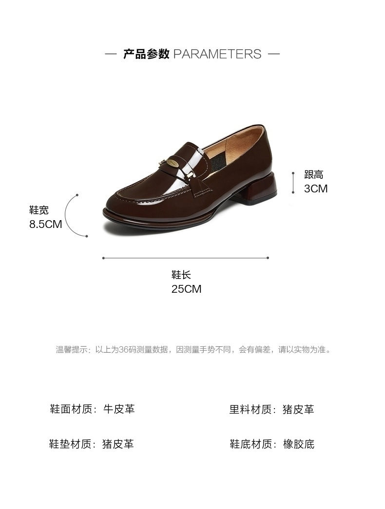 | 配跟:无 | 上市时间:2025年秋季 | 鞋类流行款式:乐福鞋 | 鞋头款式:圆头 | 鞋面图案:纯色 |