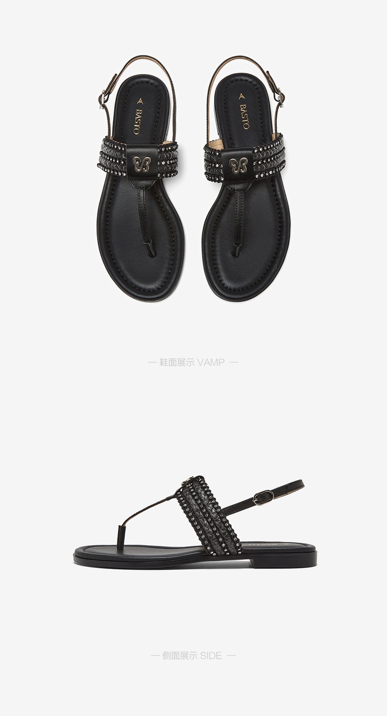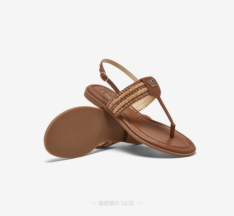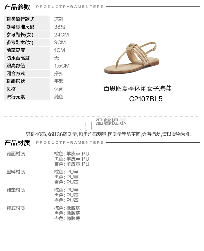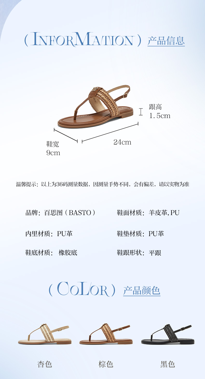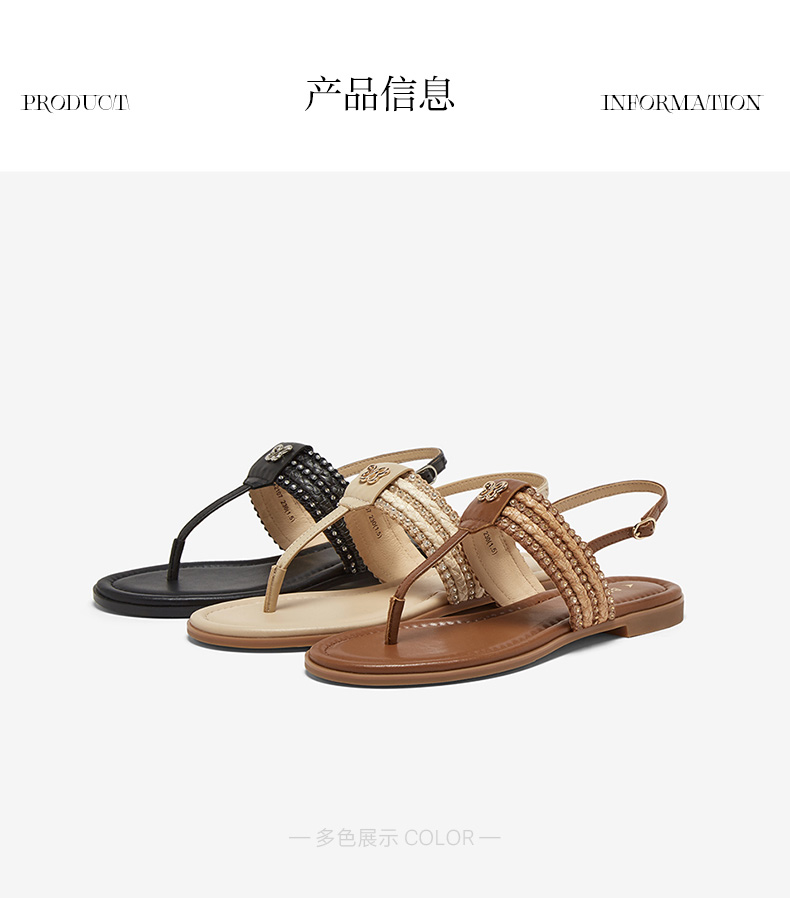 | 鞋头款式:夹趾 | 鞋底材质:橡胶底 | 鞋面图案:纯色 | 鞋跟形状:平跟 | 鞋面材质:PU羊皮革 |