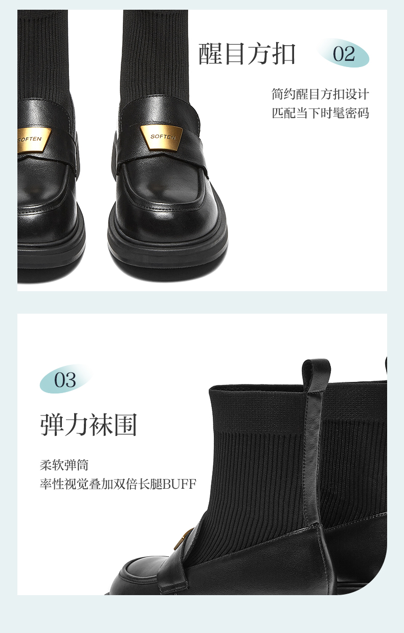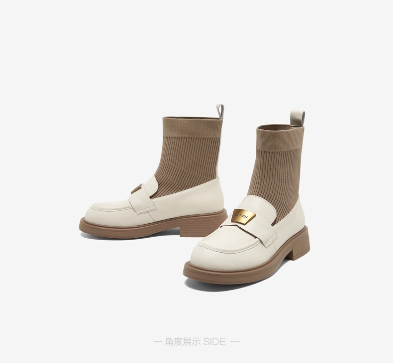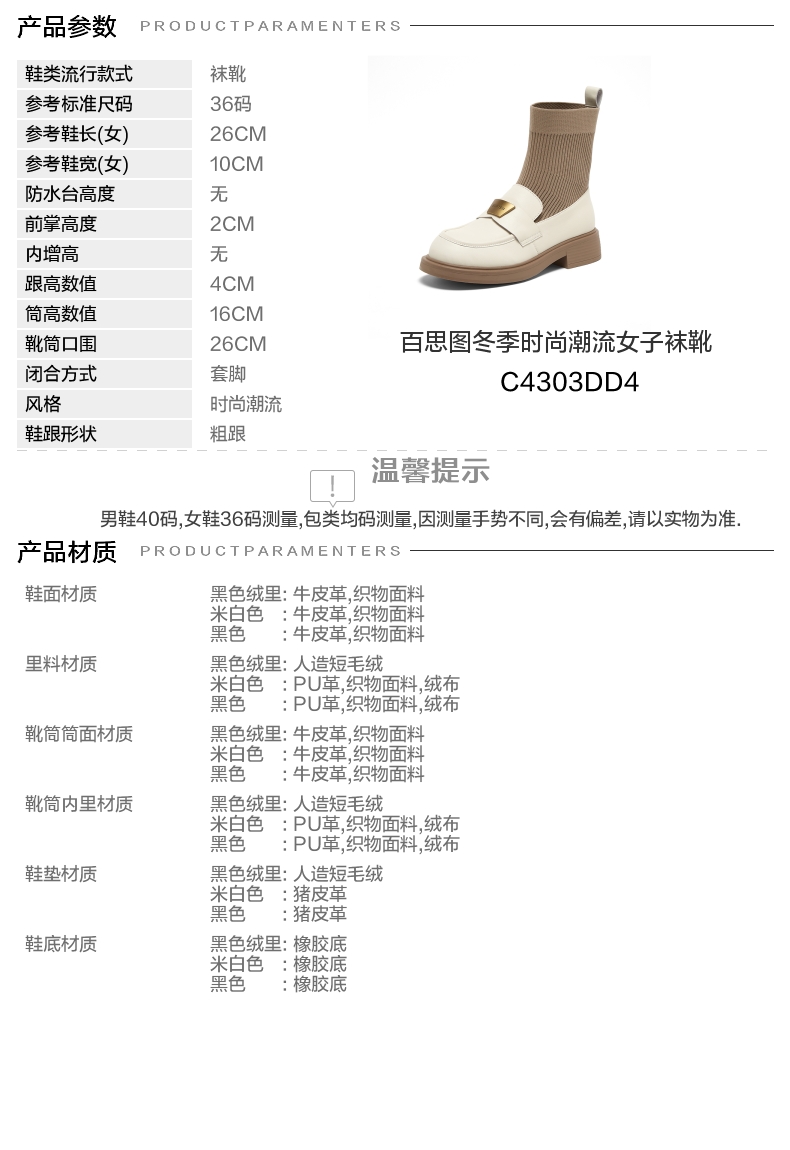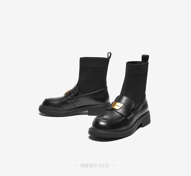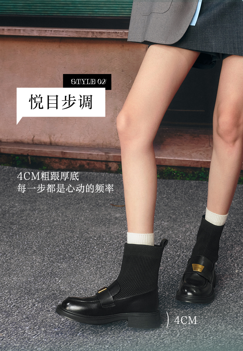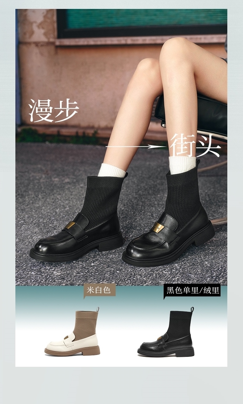 | 帮面材质:织物牛皮革 | 配跟:无 | 靴筒口围:26CM | 上市时间:2024年冬季 | 鞋类流行款式:袜靴 |
