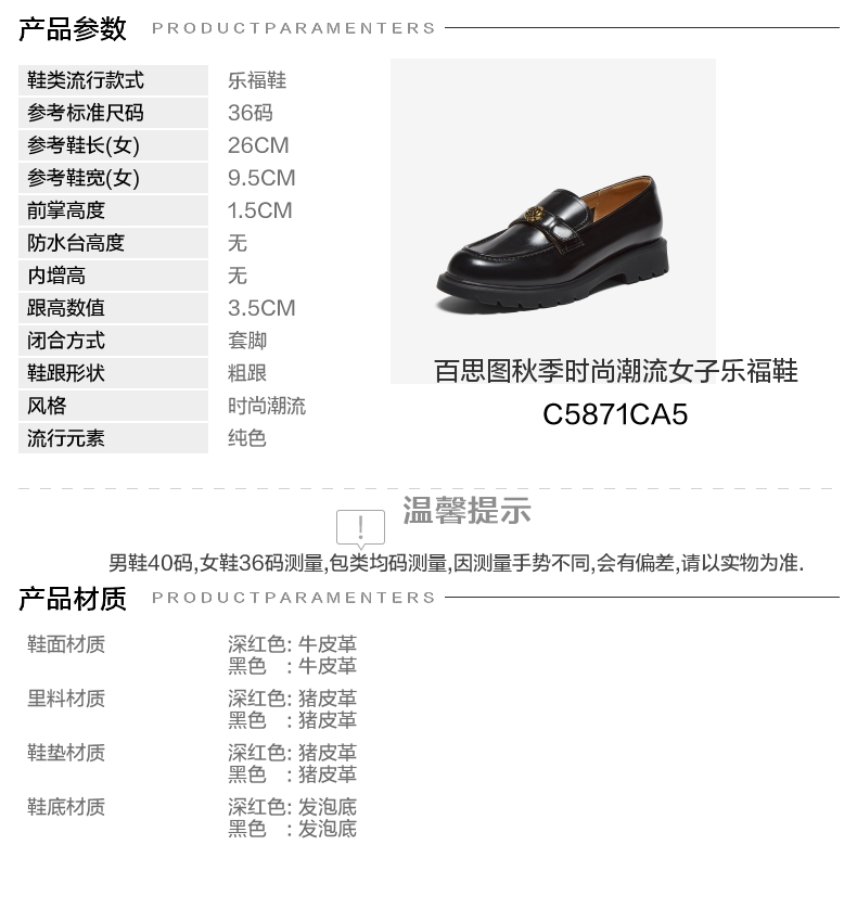 | 配跟:无 | 上市时间:2025年秋季 | 鞋类流行款式:乐福鞋 | 鞋头款式:圆头 | 鞋面图案:纯色 |
