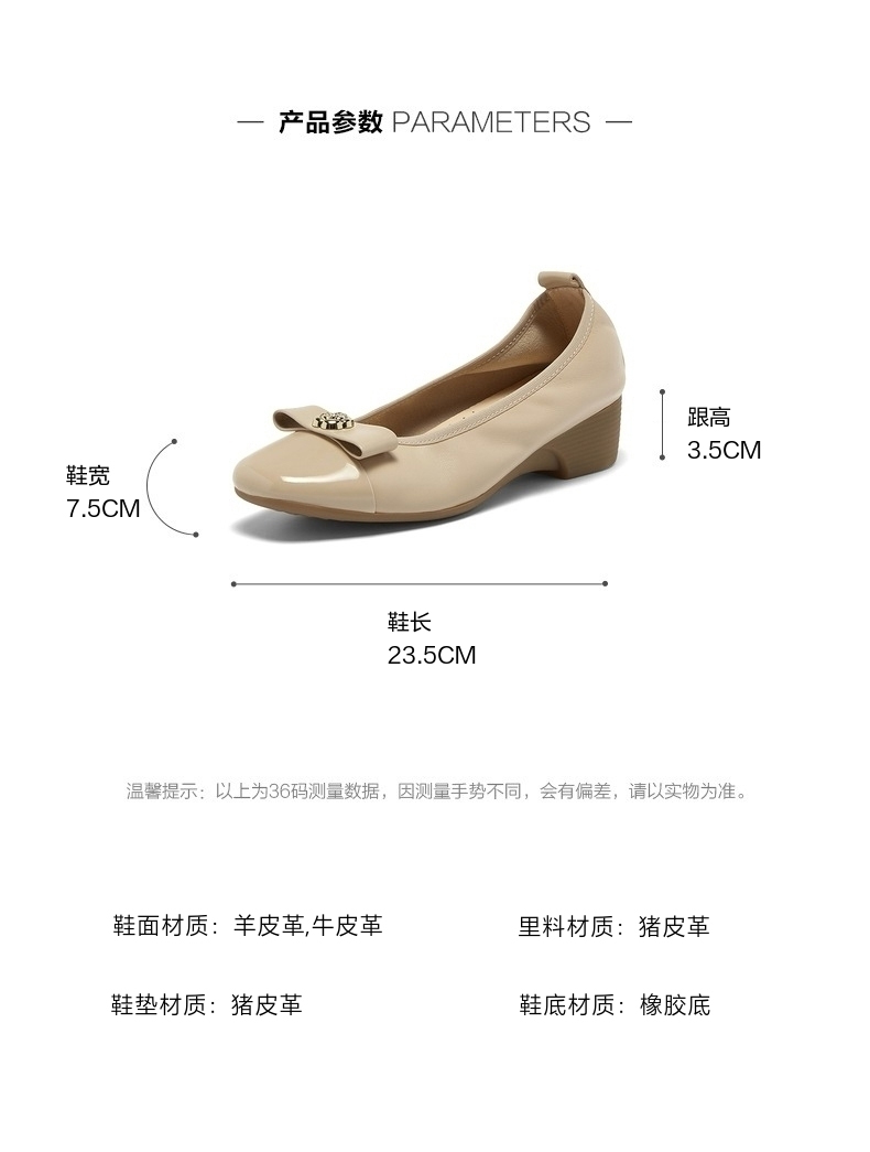 | 鞋面材质:牛皮革羊皮革 | 流行元素:纯色 | 参考鞋长(女):23.5CM | 参考鞋宽(女):7.5CM | 闭合方式:套脚 |