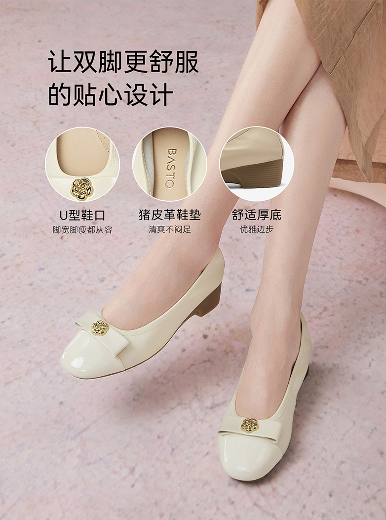 BASTO(百思图),品牌拥有17年历史,秉承优雅、甜美、清新的设计理念,主张“好嫁风”的产品风格,将甜美俏丽的少女情怀融合优雅气质的时尚品味,塑造出唯美优雅、受欢迎的女鞋款式。主打以女性温柔与亲和力为特色的流行时尚产品,糅合雅致又富有亲和力的裸粉色调,淑媛端庄、清新甜美。目前品牌已开设线下门店达1400多家。