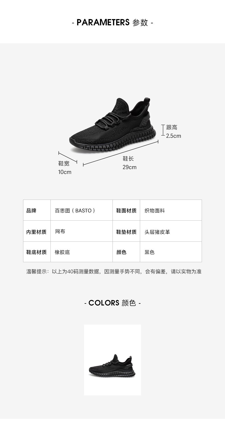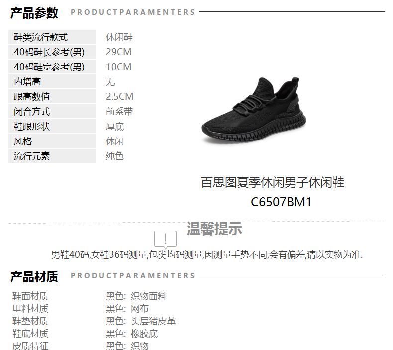 | 色系:黑色 | 跟高数值:2.5CM | 货品来源:外购 | 40码鞋宽参考(男):10CM | 性别:男子 |