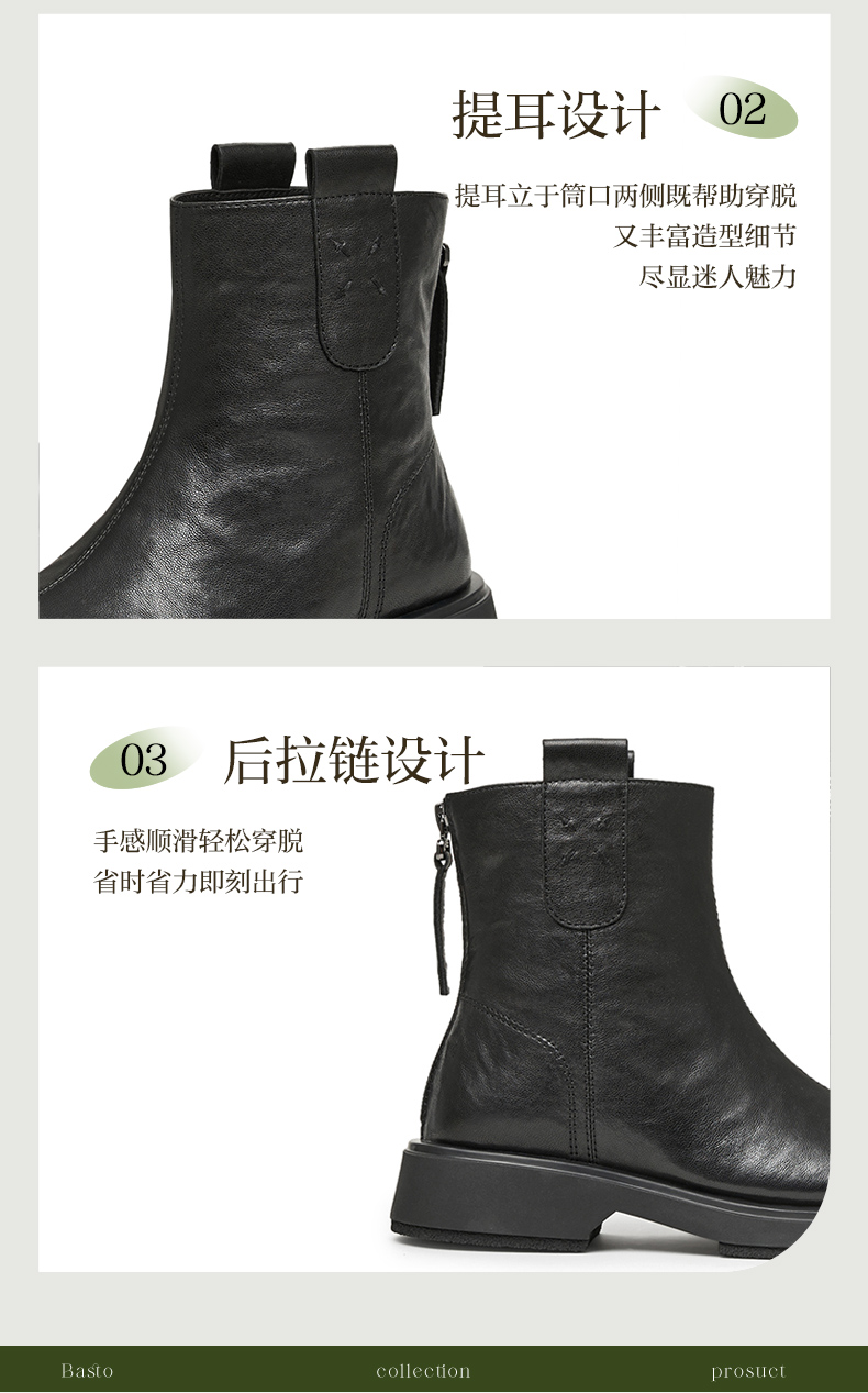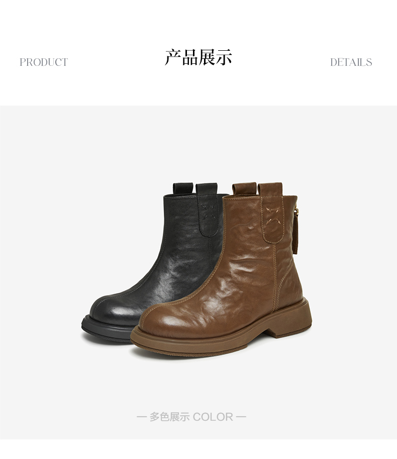 | 鞋类流行款式:短靴 | 鞋头款式:圆头 | 执行标准:舒适上班鞋Q/LR001-2023 | 跟高范围:中跟鞋(3-5CM) | 鞋面图案:纯色 |