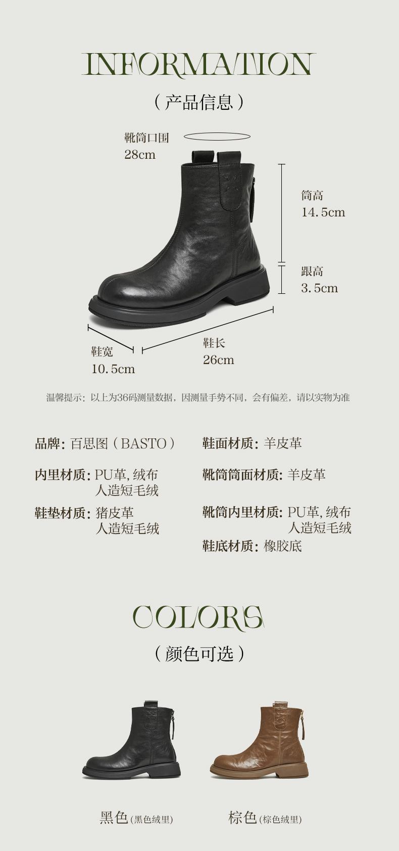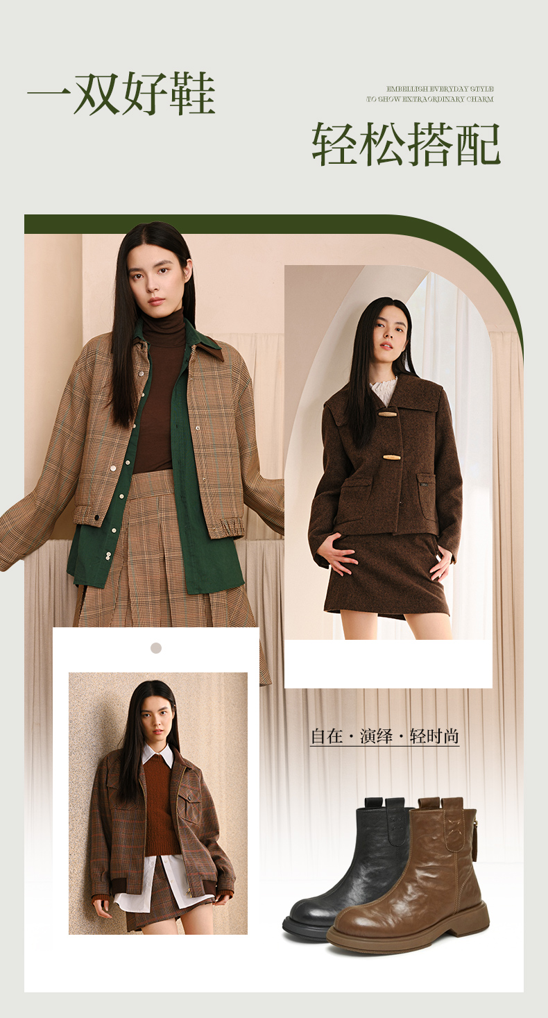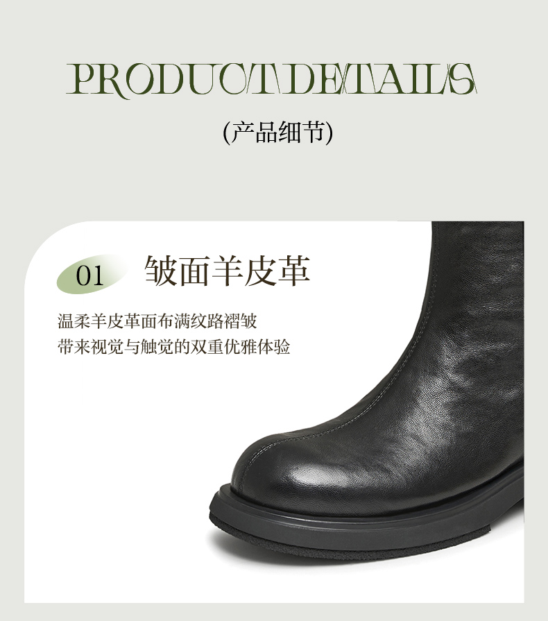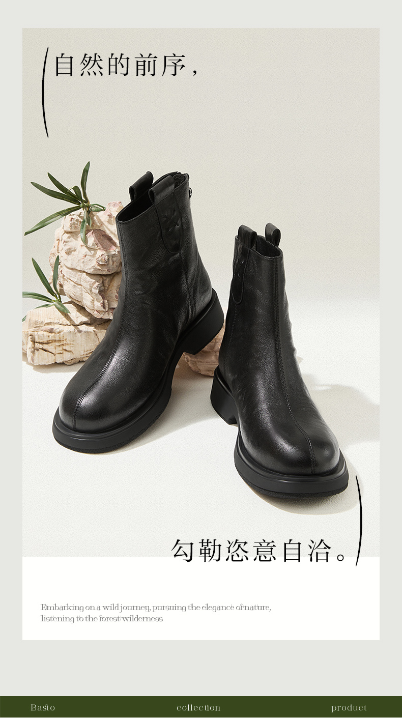 | 鞋类流行款式:短靴 | 鞋头款式:圆头 | 执行标准:舒适上班鞋Q/LR001-2023 | 跟高范围:中跟鞋(3-5CM) | 鞋面图案:纯色 |