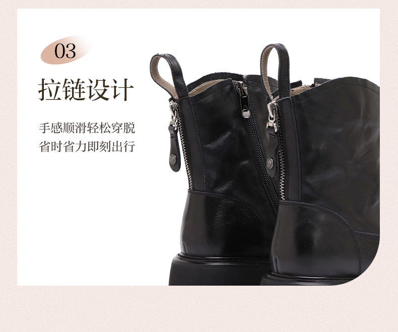 | 闭合方式:后拉链 | 筒高范围:短筒(10-20cm) | 所在区域:电子商务 | 配跟:无 | 帮面材质:牛皮革 |