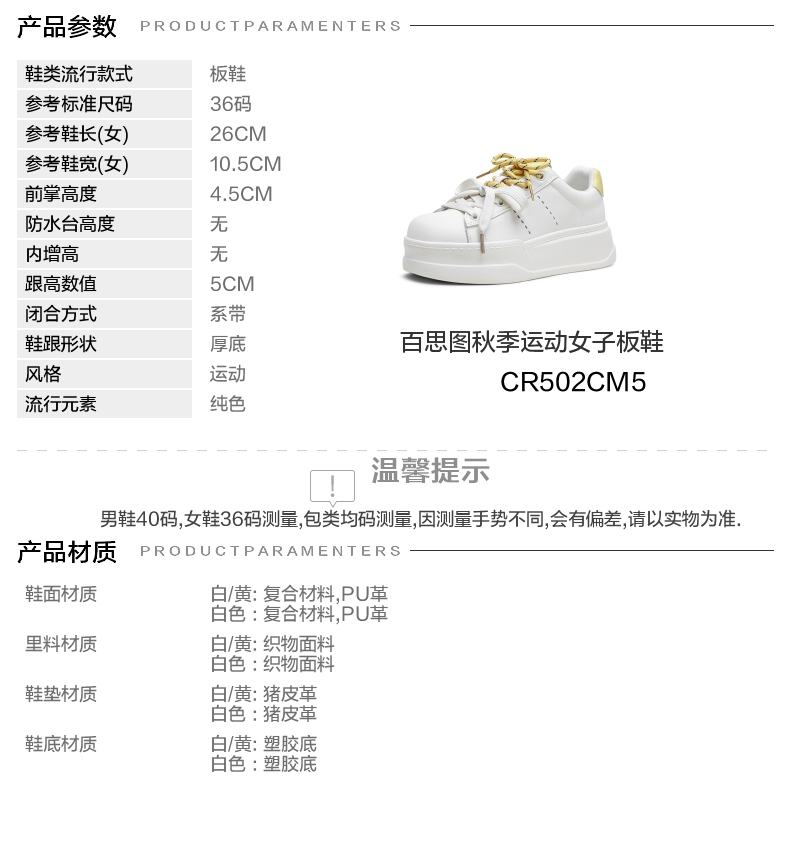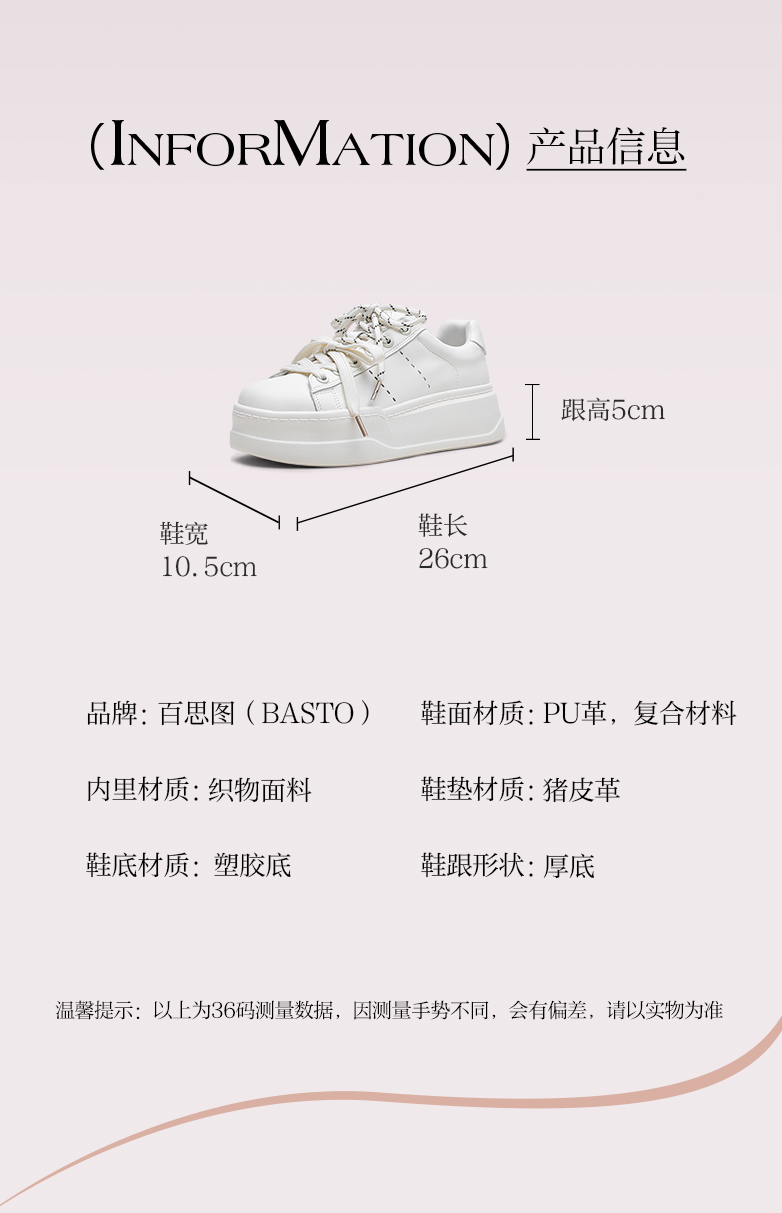 | 鞋跟形状:厚底 | 参考鞋长(女):26CM | 流行元素:纯色 | 参考鞋宽(女):10.5CM | 风格:运动 |