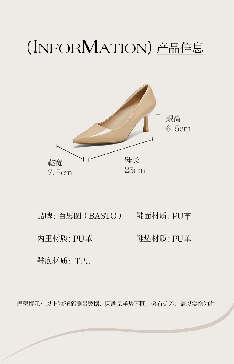 | 鞋头款式:尖头 | 鞋底材质:TPU | 鞋面图案:纯色 | 内增高:无 | 鞋跟形状:细跟 |