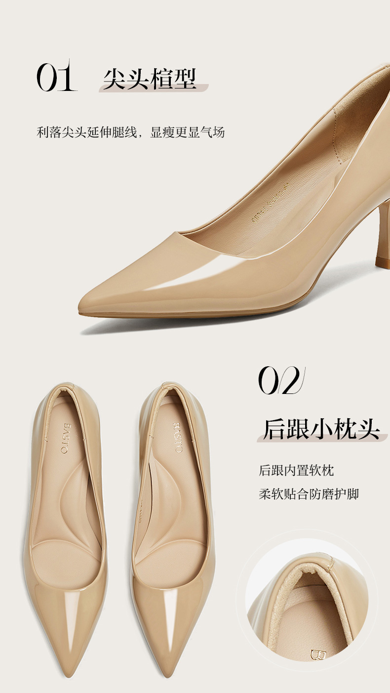 BASTO(百思图),品牌拥有17年历史,秉承优雅、甜美、清新的设计理念,主张“好嫁风”的产品风格,将甜美俏丽的少女情怀融合优雅气质的时尚品味,塑造出唯美优雅、受欢迎的女鞋款式。主打以女性温柔与亲和力为特色的流行时尚产品,糅合雅致又富有亲和力的裸粉色调,淑媛端庄、清新甜美。目前品牌已开设线下门店达1400多家。