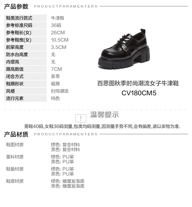 | 鞋垫材质:PU革 | 款式季节:秋季 | 前掌高度:3.5CM | 皮质特征:无 | 防水台高度:无 |