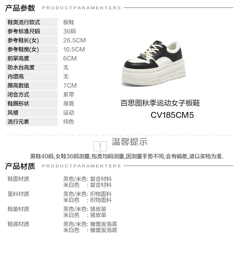 | 鞋跟形状:厚底 | 参考鞋长(女):26.5CM | 流行元素:纯色 | 参考鞋宽(女):10.5CM | 风格:运动 |