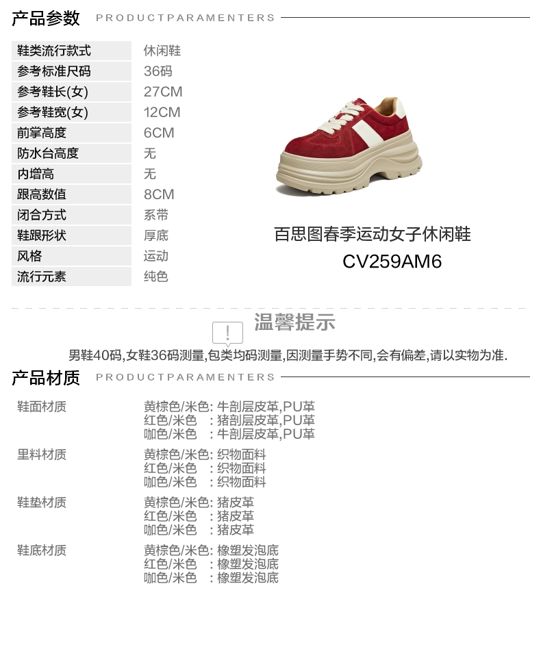 | 前掌高度:6CM | 皮质特征:无 | 防水台高度:无 |