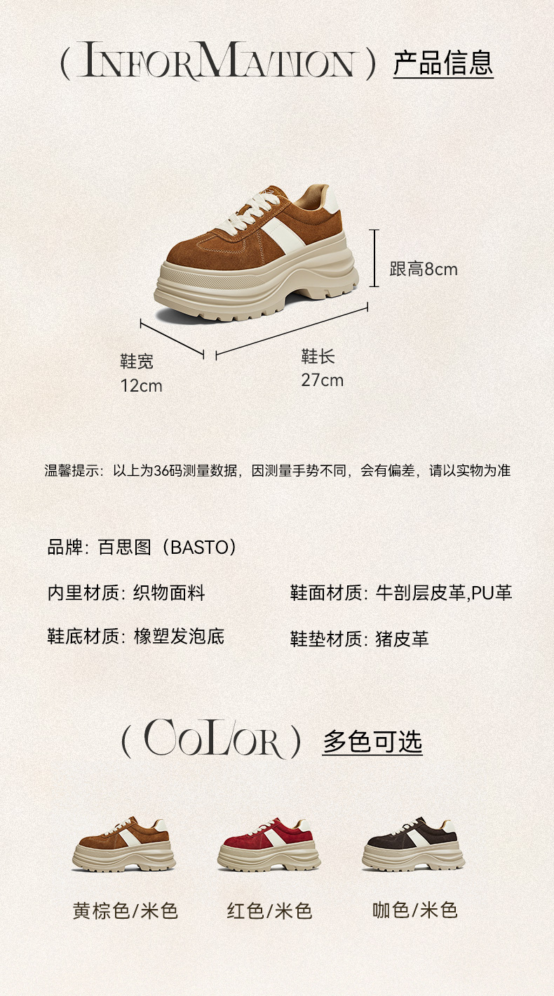 | 鞋跟形状:厚底 | 参考鞋长(女):27CM | 流行元素:纯色 | 参考鞋宽(女):12CM | 风格:运动 |