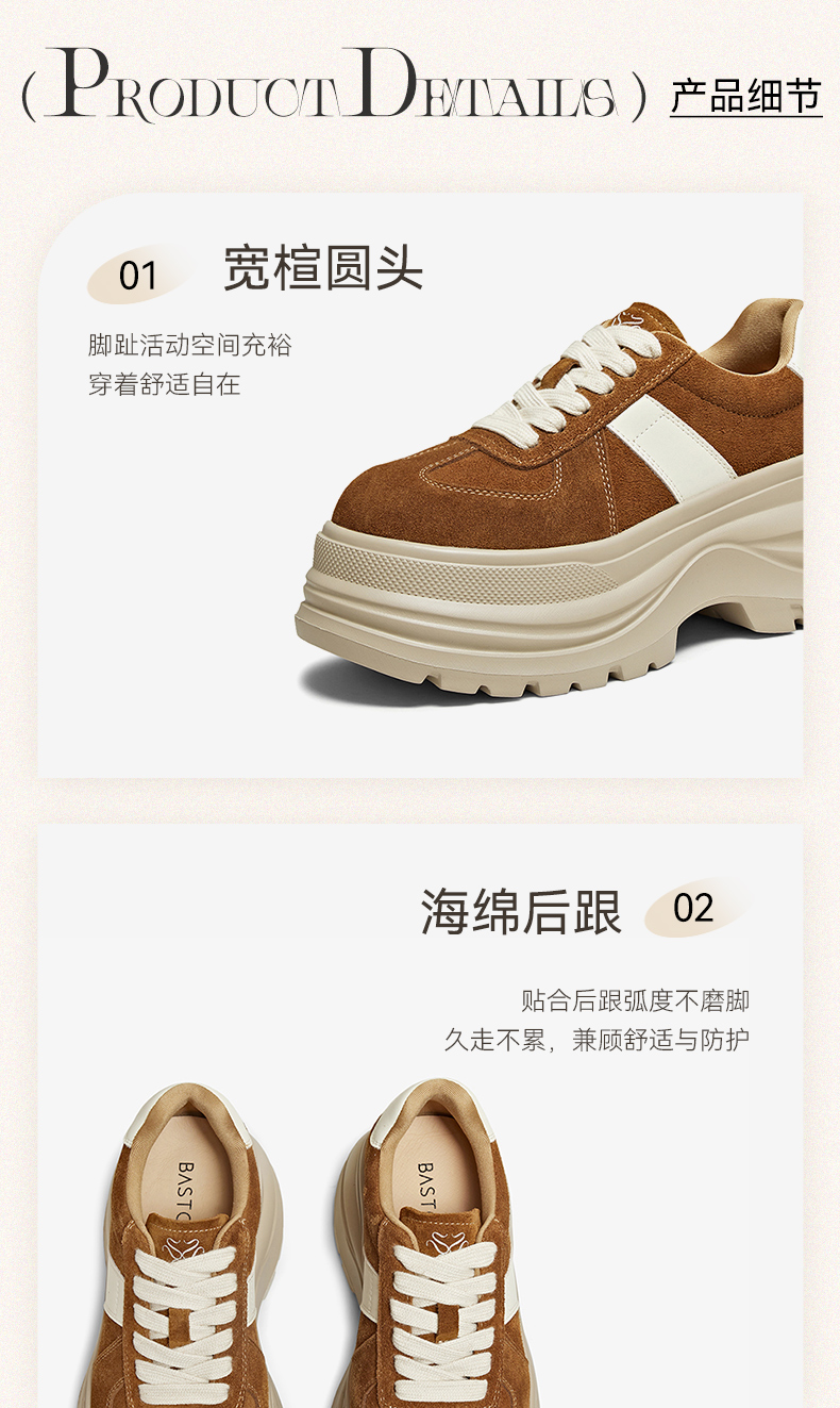 BASTO(百思图),品牌拥有17年历史,秉承优雅、甜美、清新的设计理念,主张“好嫁风”的产品风格,将甜美俏丽的少女情怀融合优雅气质的时尚品味,塑造出唯美优雅、受欢迎的女鞋款式。主打以女性温柔与亲和力为特色的流行时尚产品,糅合雅致又富有亲和力的裸粉色调,淑媛端庄、清新甜美。目前品牌已开设线下门店达1400多家。