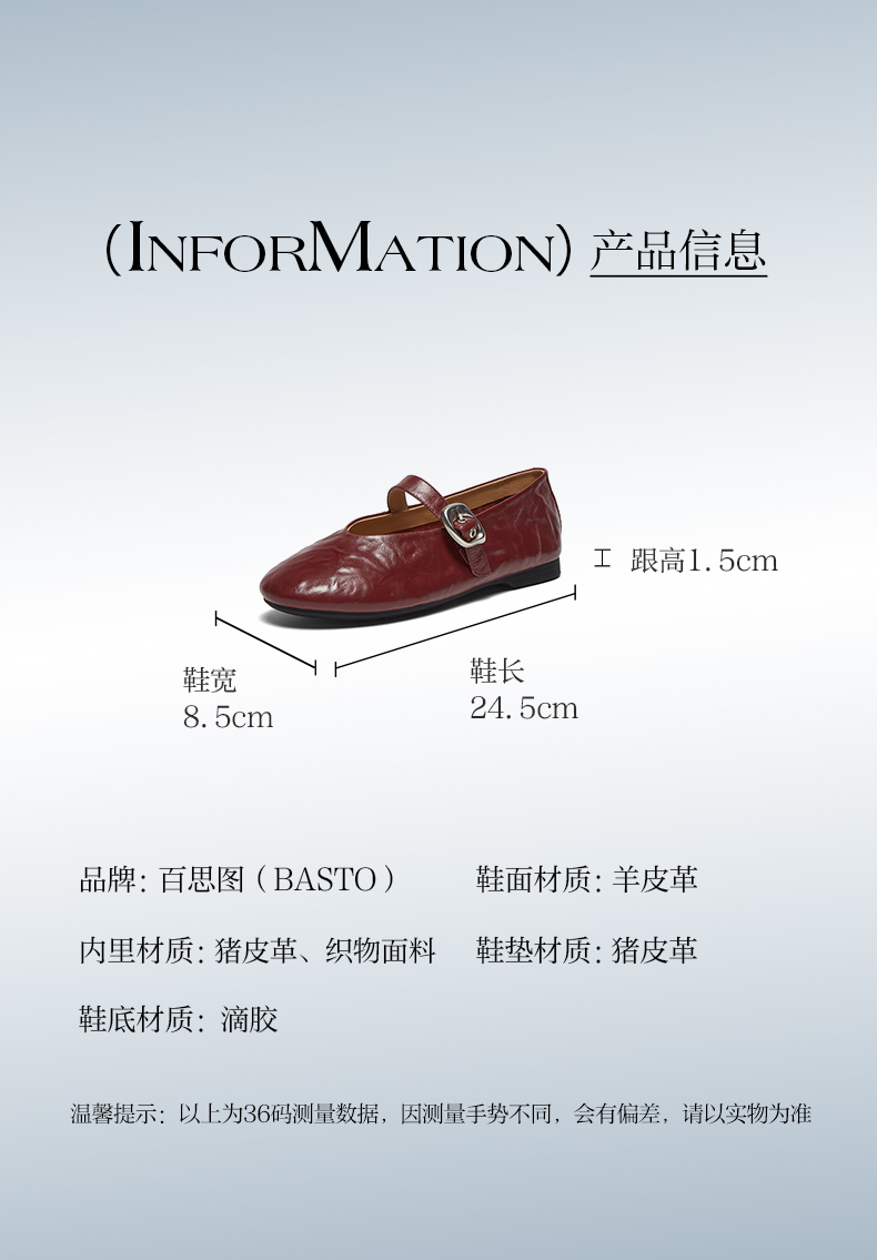 | 鞋面材质:羊皮革 | 流行元素:纯色 | 参考鞋长(女):24.5CM | 参考鞋宽(女):8.5CM | 闭合方式:搭扣 |