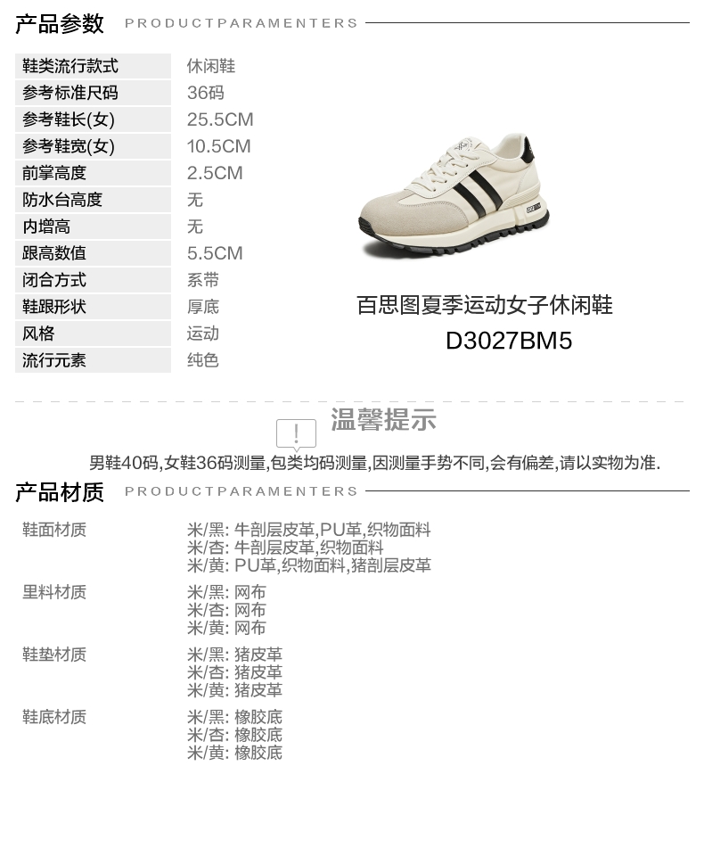 | 流行元素:纯色 | 参考鞋长(女):25.5CM | 参考鞋宽(女):10.5CM | 风格:运动 | 年份:2025年 |