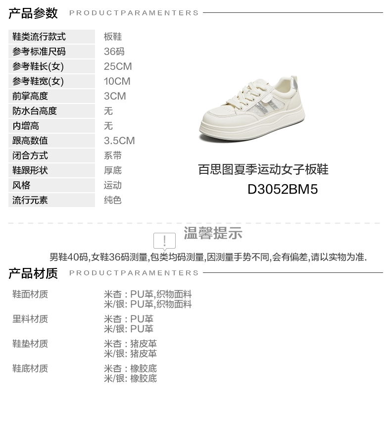 | 流行元素:纯色 | 参考鞋长(女):25CM | 参考鞋宽(女):10CM | 风格:运动 | 年份:2025年 |