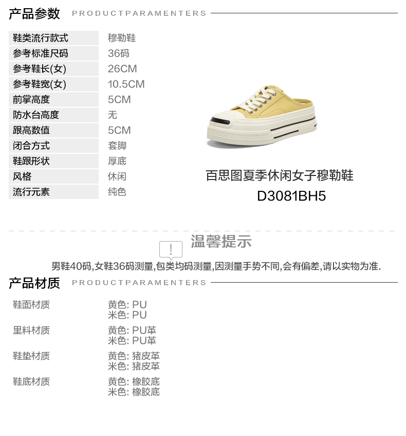 | 皮质特征:PU | 防水台高度:无 | 鞋类流行款式:穆勒鞋 |
