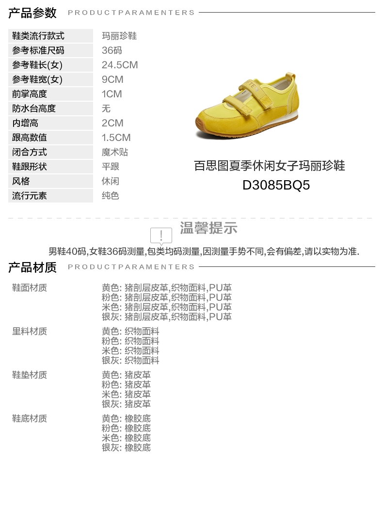 | 风格:休闲 | 跟高数值:1.5CM | 色系:黄色 | 配跟:无 | 性别:女子 |