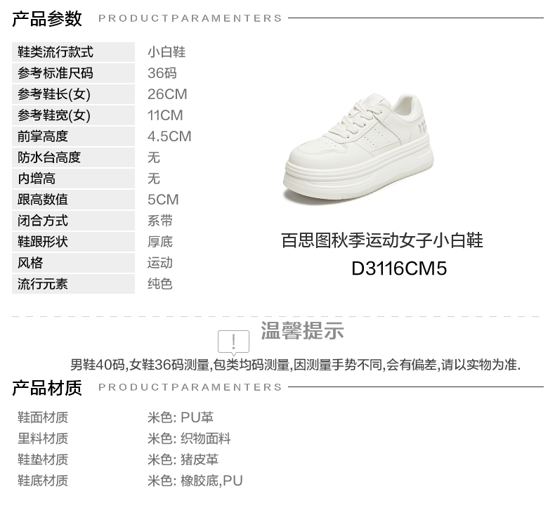 | 配跟:无 | 上市时间:2025年秋季 | 鞋类流行款式:小白鞋 | 鞋头款式:圆头 | 鞋面图案:纯色 |