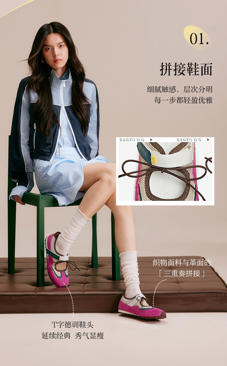 BASTO(百思图),品牌拥有17年历史,秉承优雅、甜美、清新的设计理念,主张“好嫁风”的产品风格,将甜美俏丽的少女情怀融合优雅气质的时尚品味,塑造出唯美优雅、受欢迎的女鞋款式。主打以女性温柔与亲和力为特色的流行时尚产品,糅合雅致又富有亲和力的裸粉色调,淑媛端庄、清新甜美。目前品牌已开设线下门店达1400多家。
